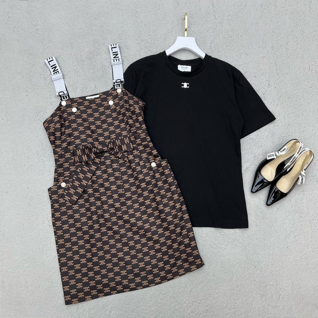 Monogram 棕色 Celine 工装连衣裙