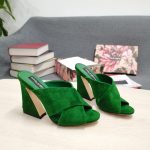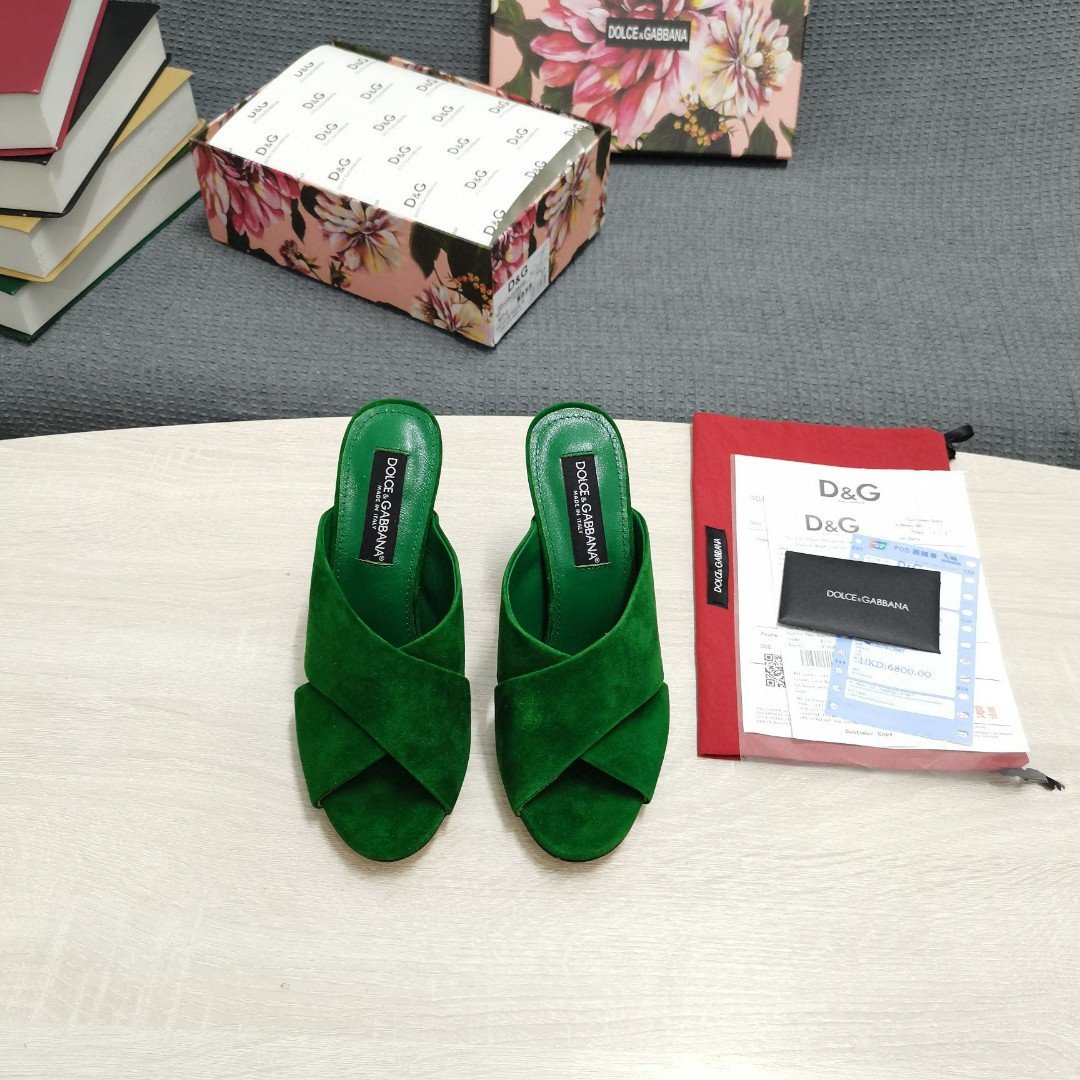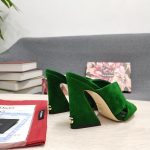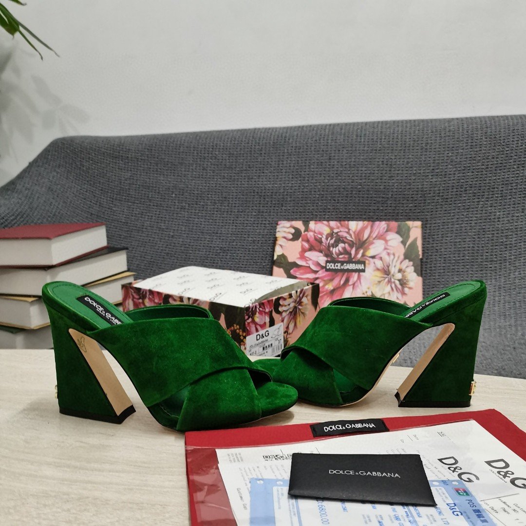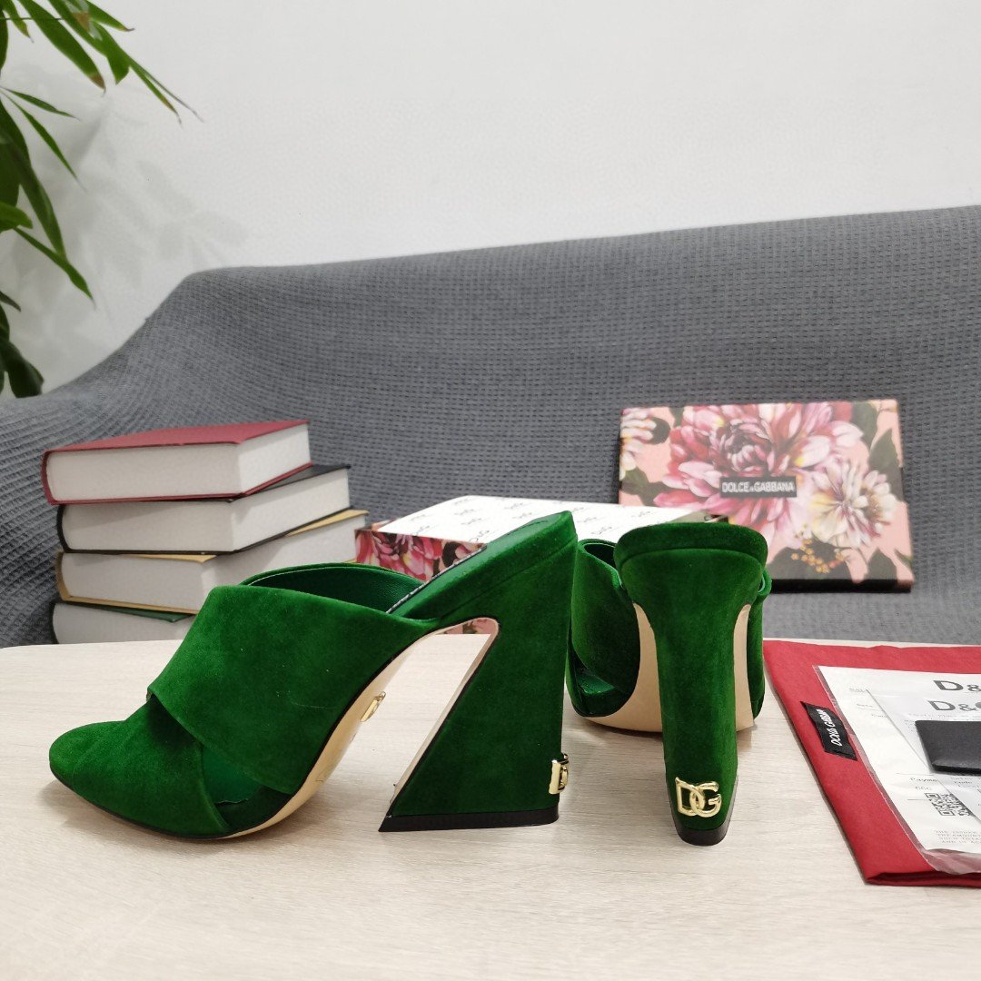 杜嘉班纳Gabbana 几何鞋跟绿色缎面穆勒鞋 女士 DG 鞋
