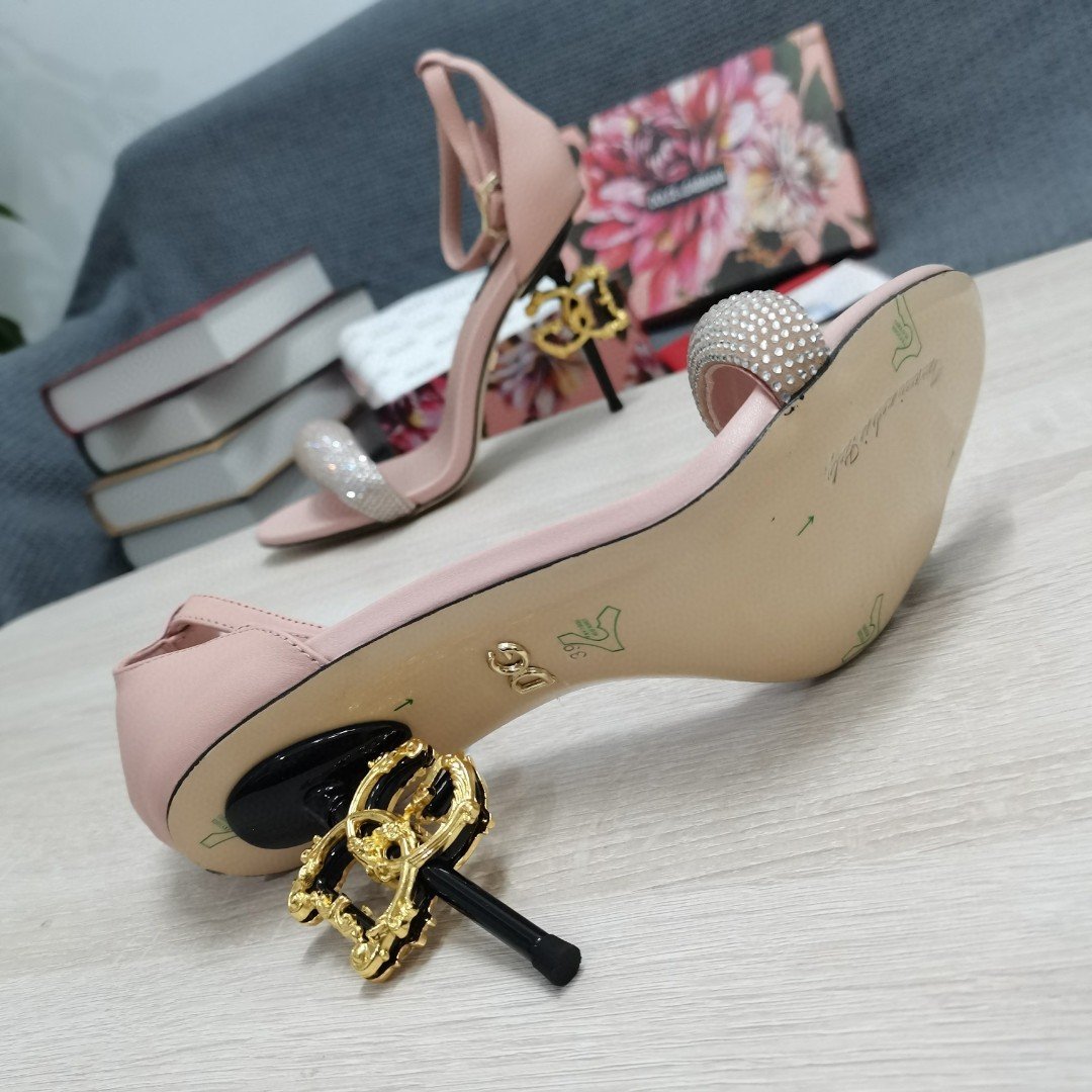 杜嘉班纳Gabbana 缎粉色漆皮凉鞋,适合 DG 女式鞋