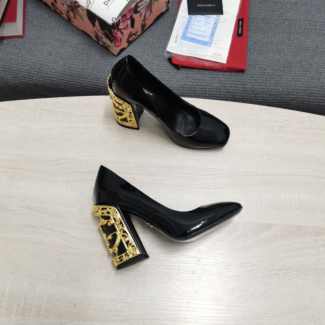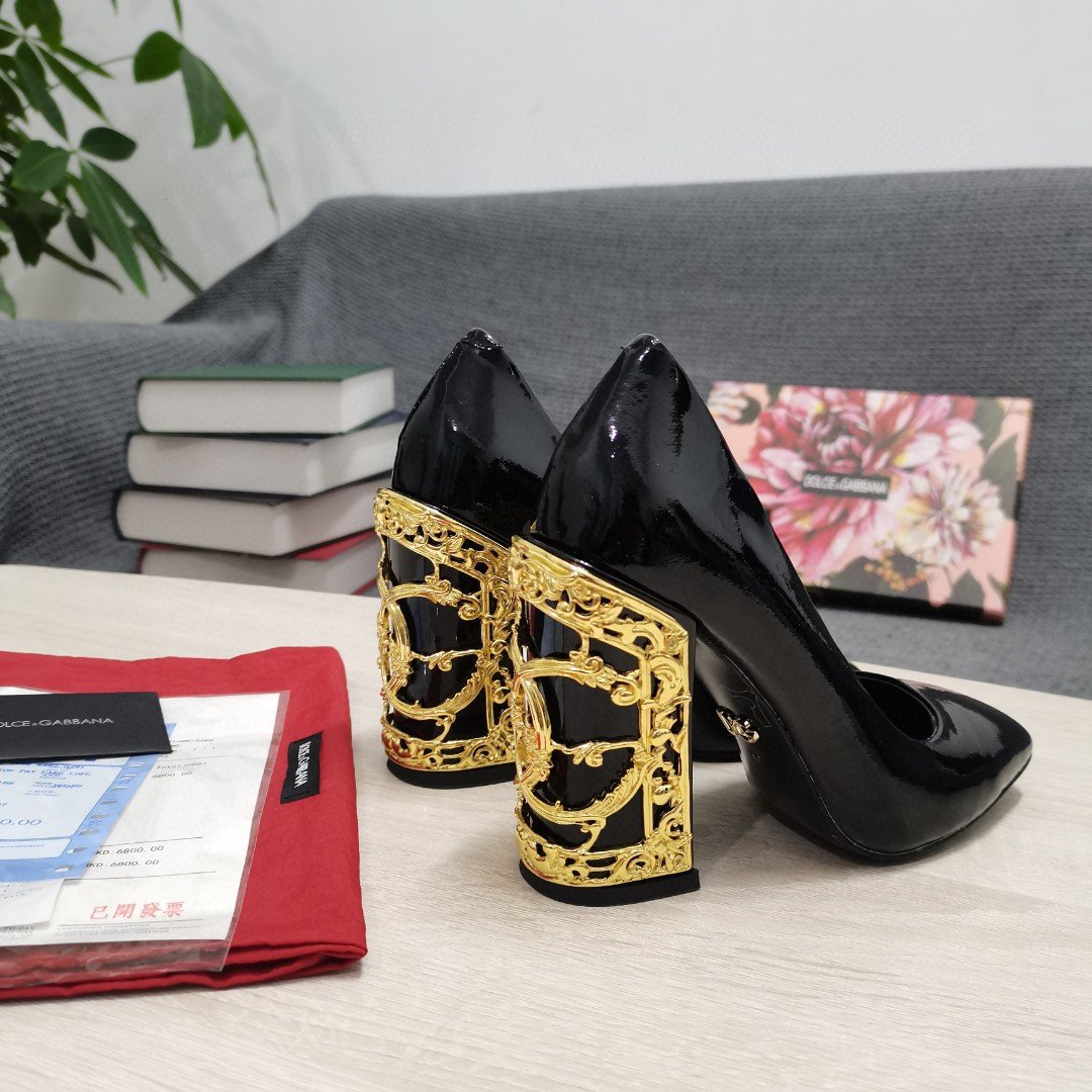 杜嘉班纳Gabbana 女式 DG 鞋款黑色纳帕高跟鞋