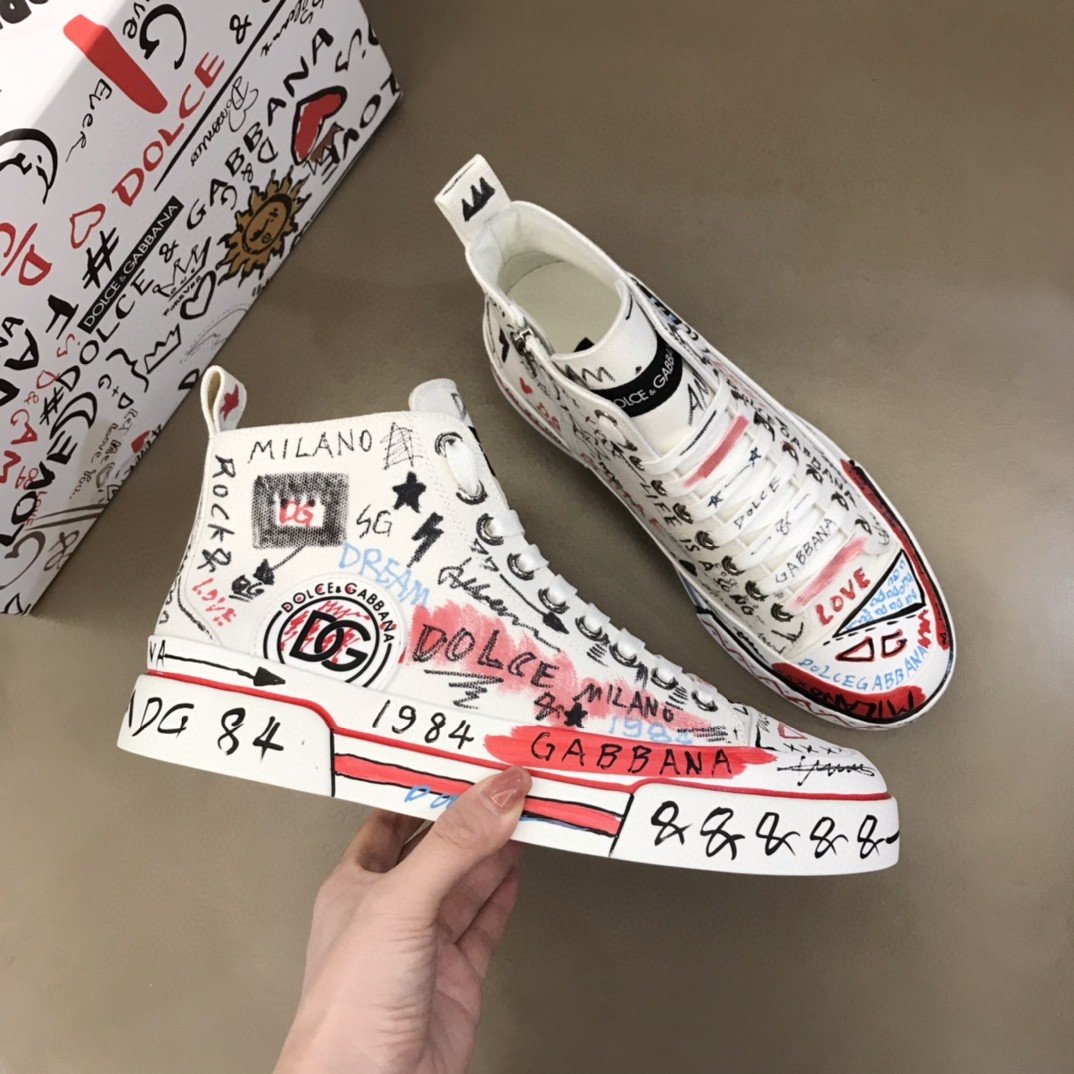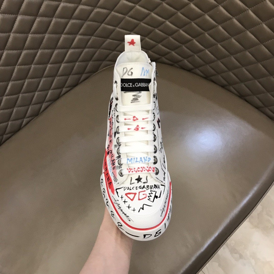 杜嘉班纳Gabbana 手绘涂鸦帆布 Portofino 轻便中帮运动鞋白色男士 DG 鞋 CS1889AO788HWF57