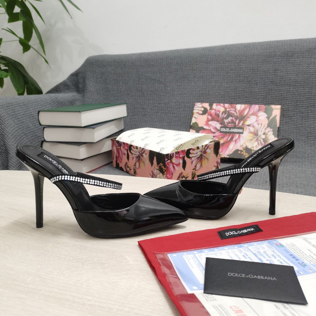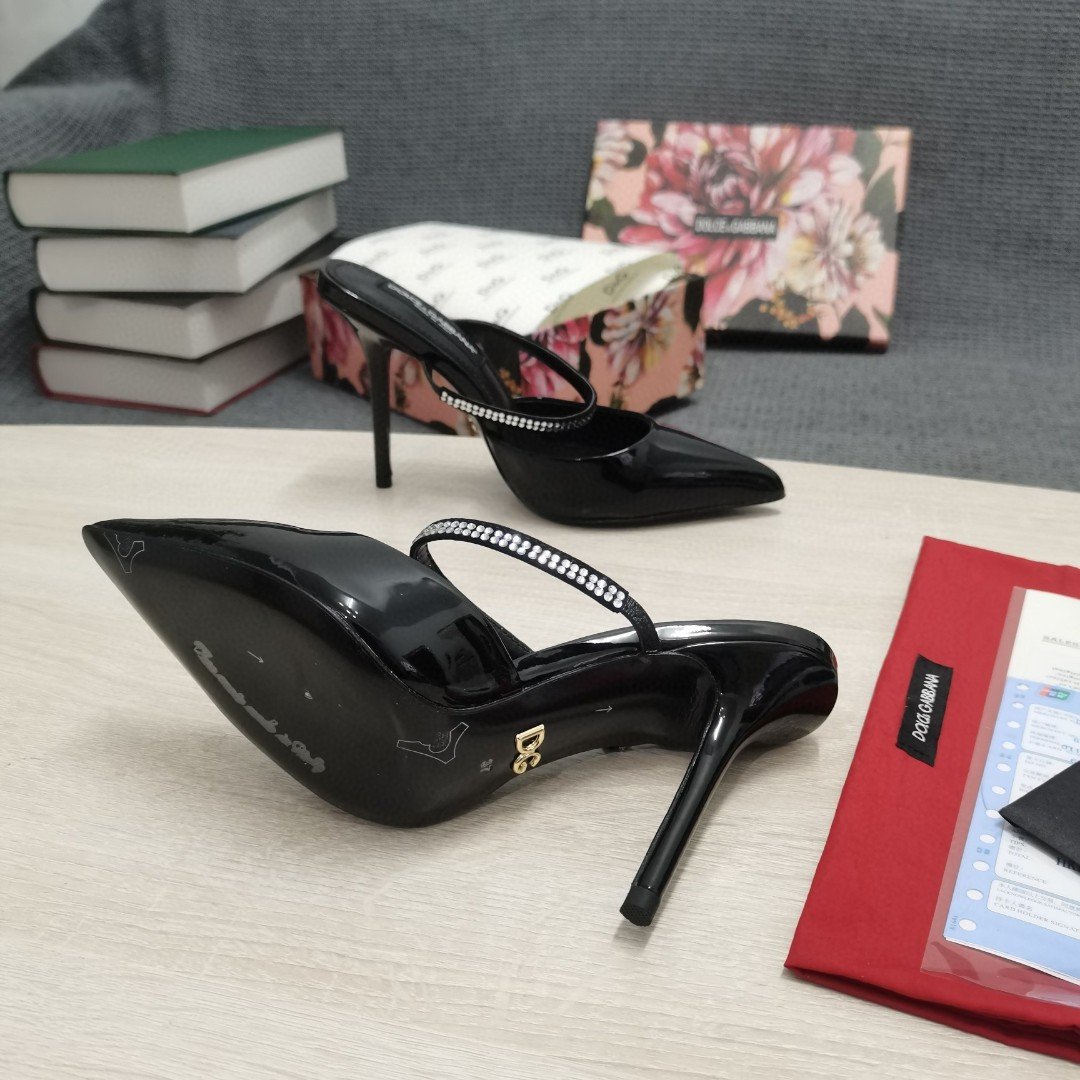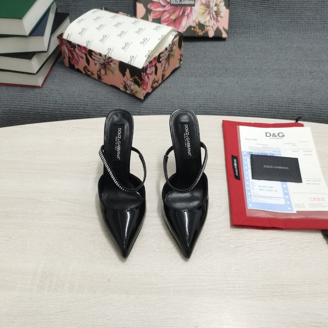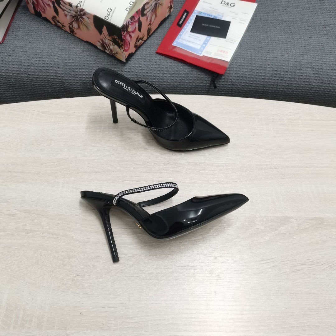 杜嘉班纳Gabbana 黑色刺绣抛光穆勒鞋 女式 DG 鞋 CI0150AY8558S488