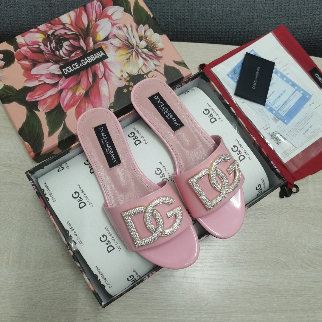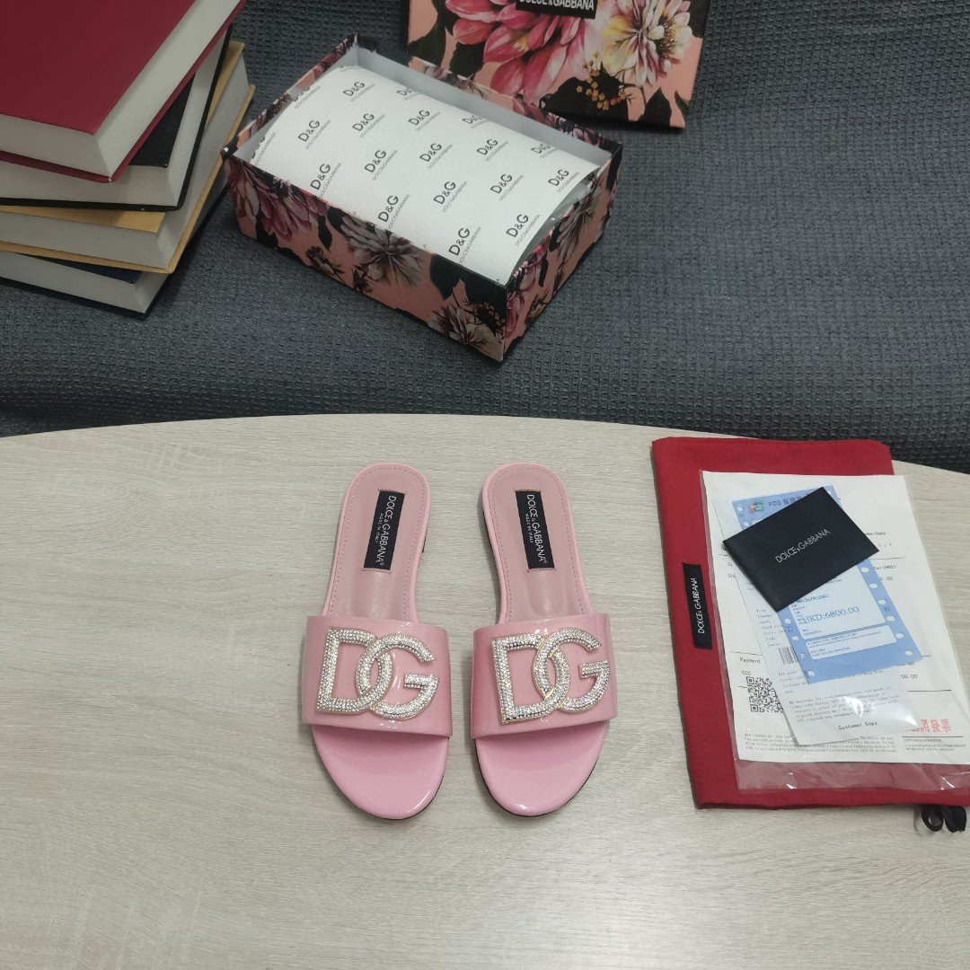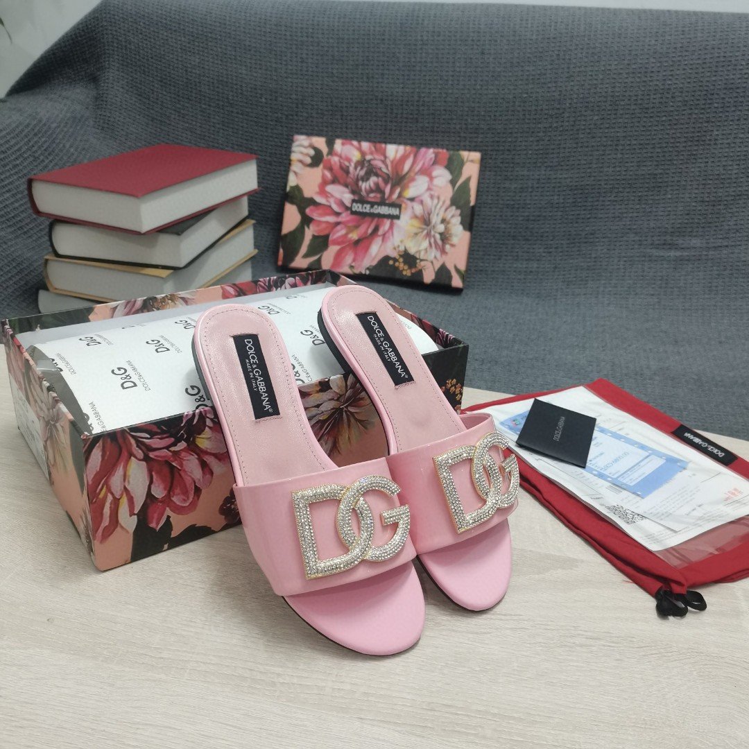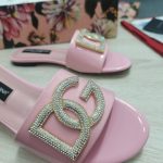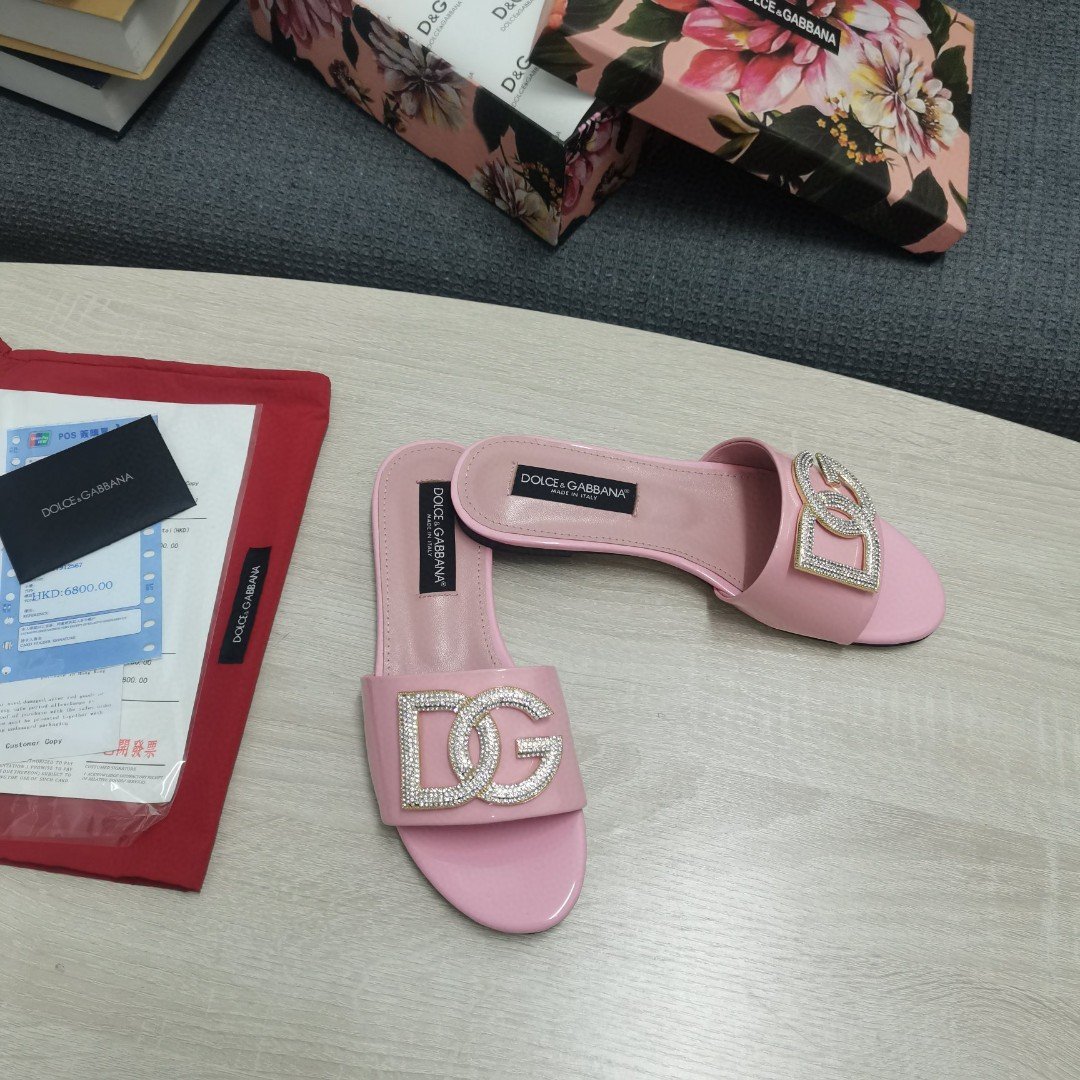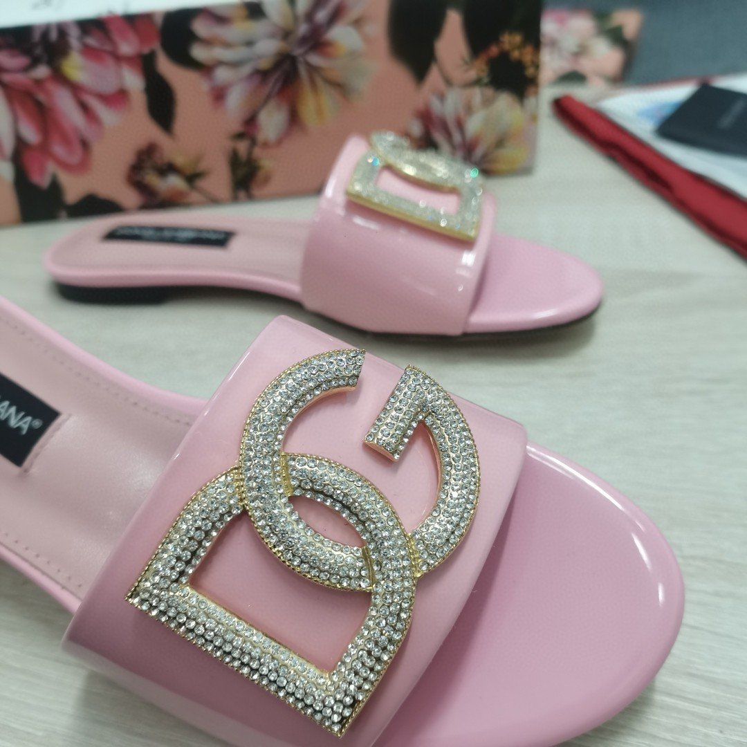 杜嘉班纳Gabbana 烫金鬣蜥印花拖鞋,带有水钻细节 DG 徽标粉色,适合女式 DG 鞋