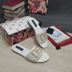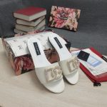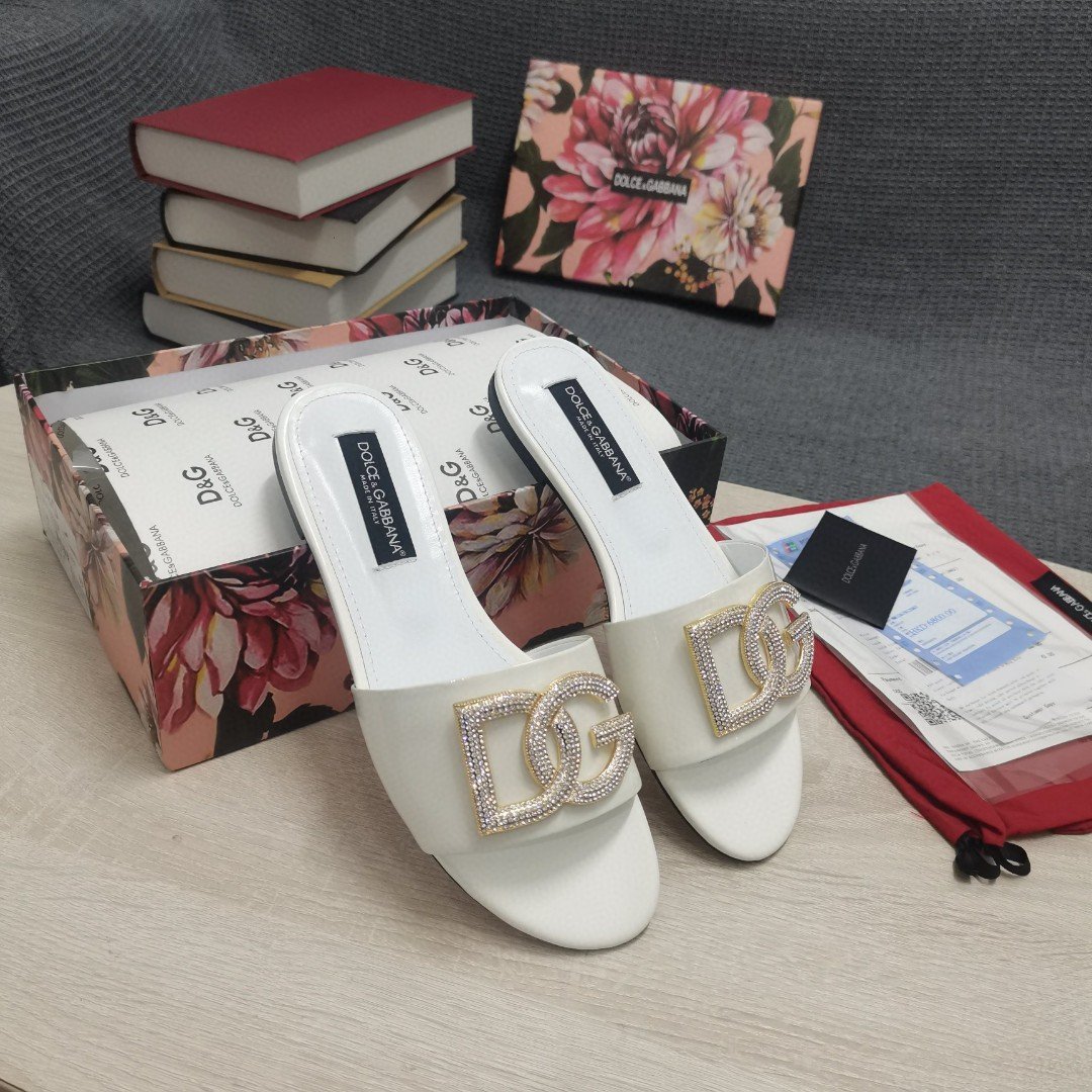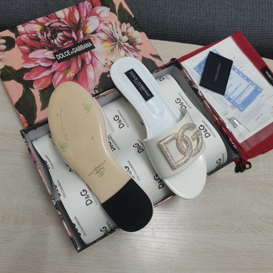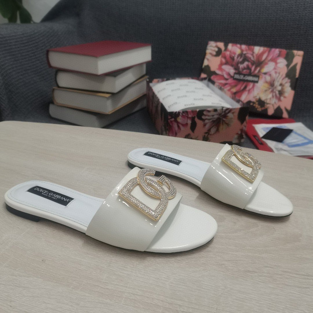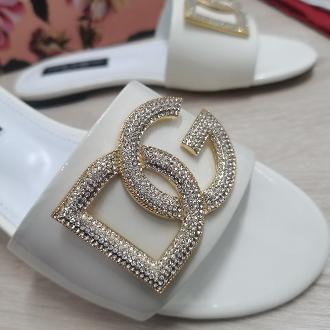 杜嘉班纳Gabbana 烫金鬣蜥印花拖鞋,饰有水钻细节 DG 徽标白色女式 DG 鞋