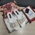 杜嘉班纳Gabbana 烫金鬣蜥印花拖鞋,饰有水钻细节 DG 徽标 白色 女式 DG 鞋履