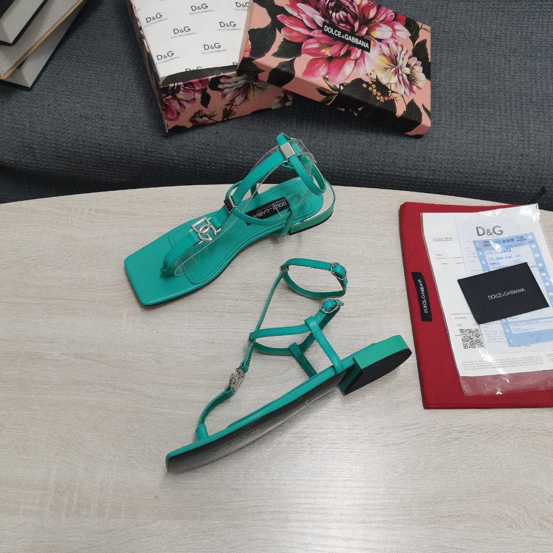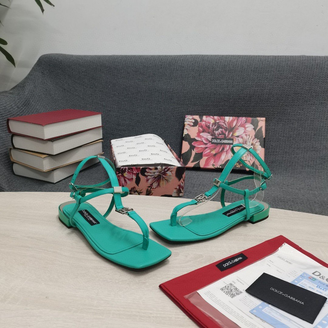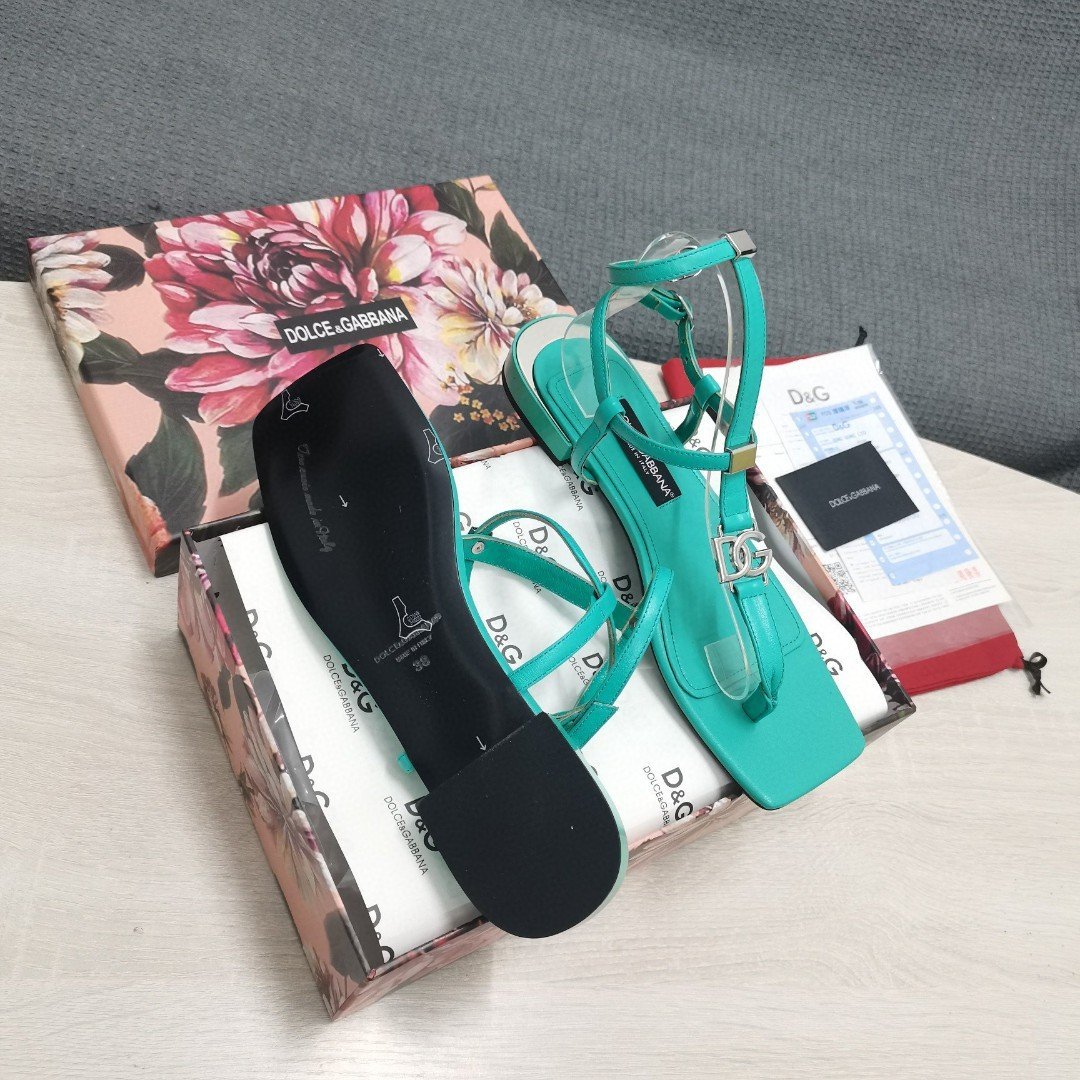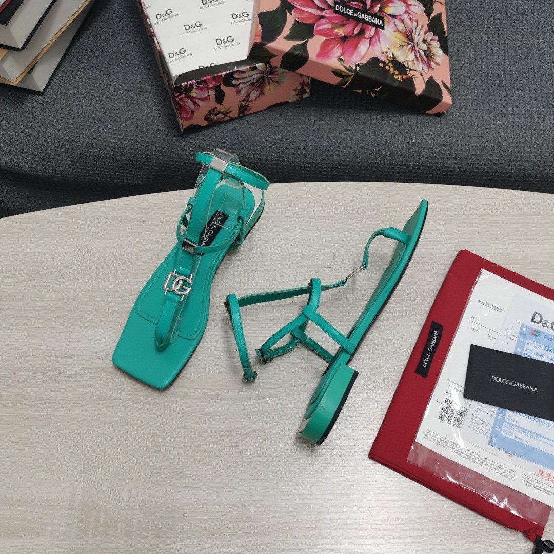 杜嘉班纳Gabbana DG 女士 Nappa 夹趾凉鞋 绿色 DG 鞋履