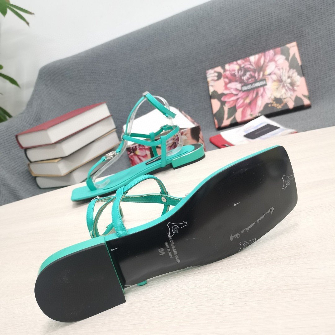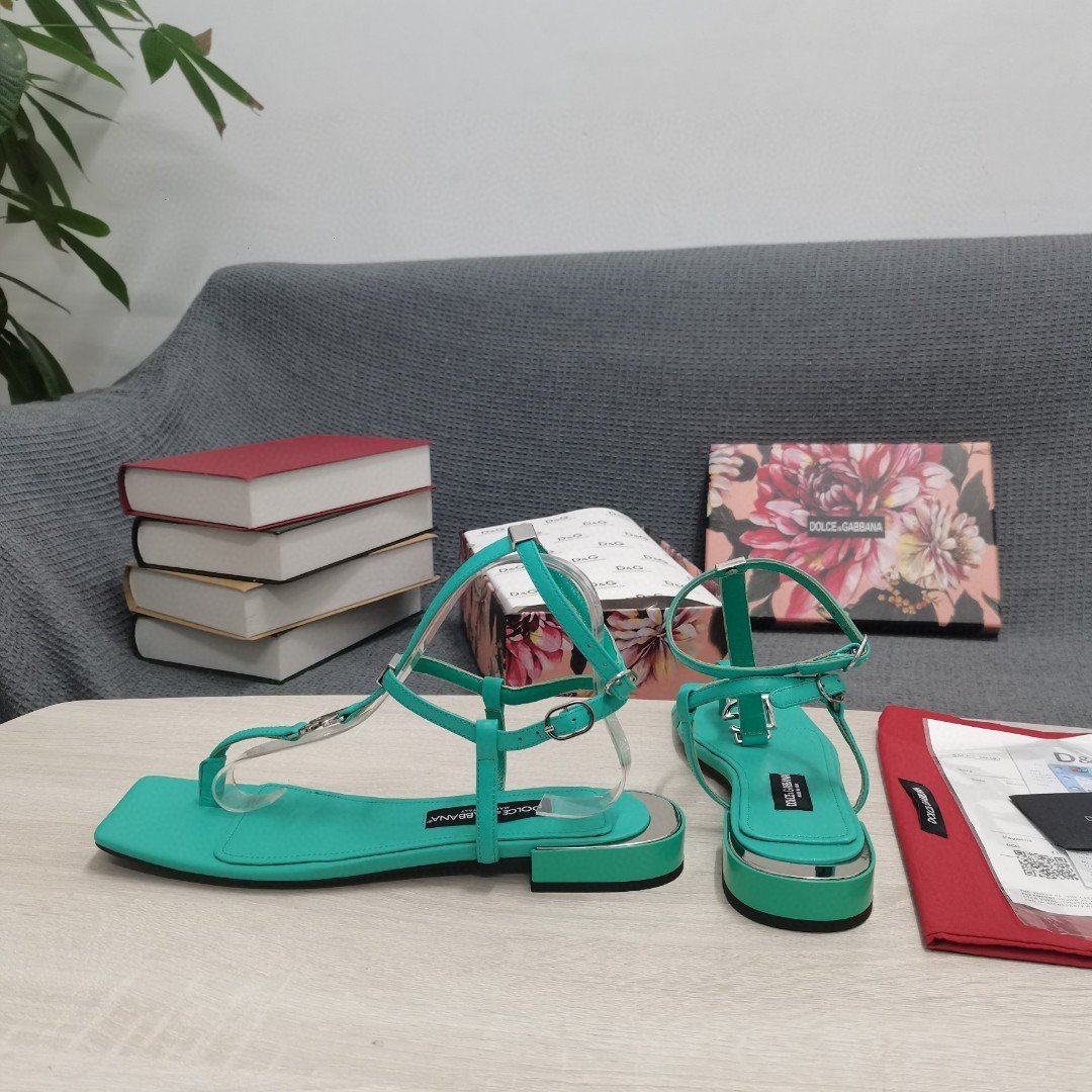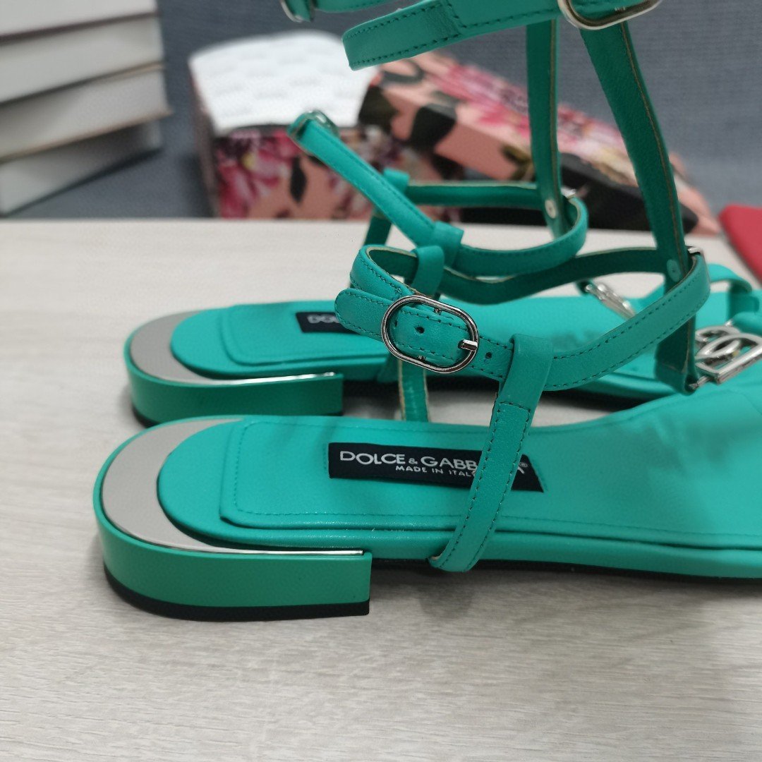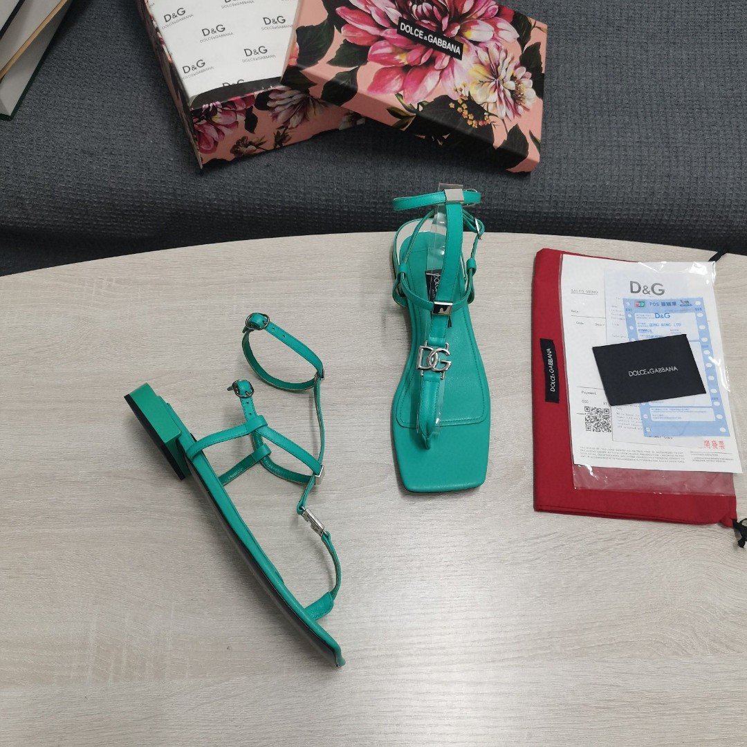 杜嘉班纳Gabbana DG 女士 Nappa 夹趾凉鞋 绿色 DG 鞋履
