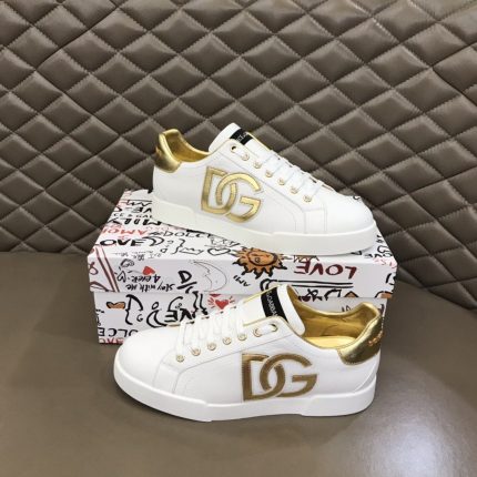 这些标志性的 Portofino 运动鞋采用纳帕皮材质。这个新版本的侧面印有对比鲜明的 DG 标志,后扰流板带有微注射橡胶标志。鞋舌上印有 Dolce&Gabbana 标志。