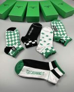 格纹短袜白色/绿色/黑色 – 5 双