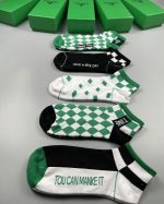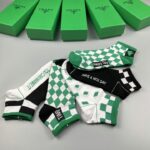 Bottega Veneta 格纹短袜 白色/绿色/黑色