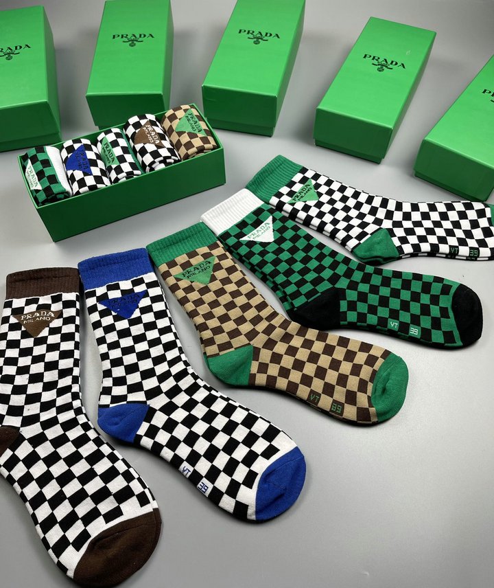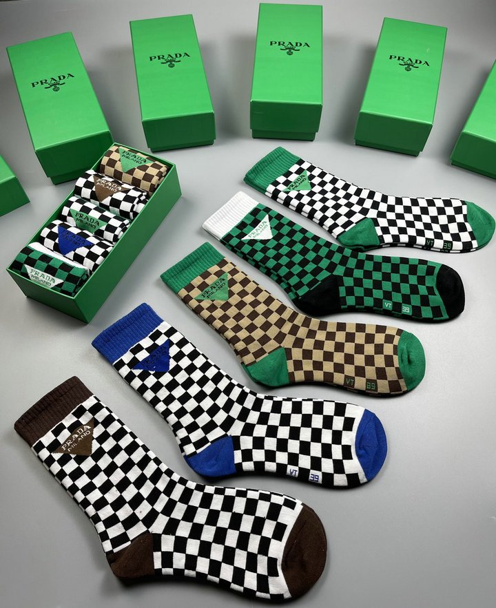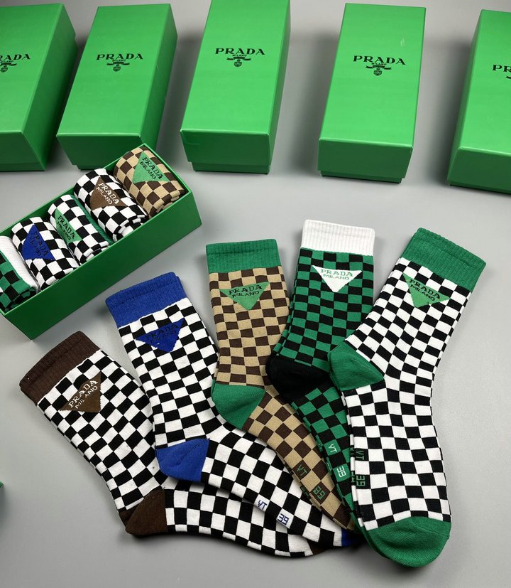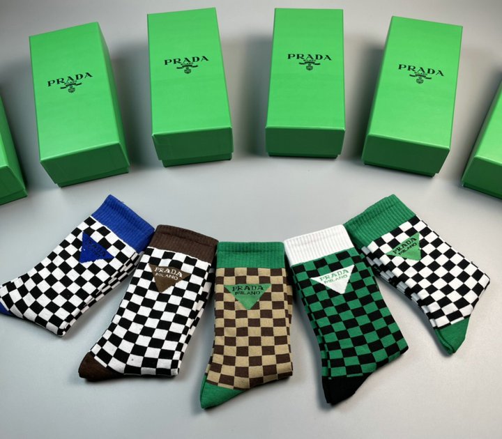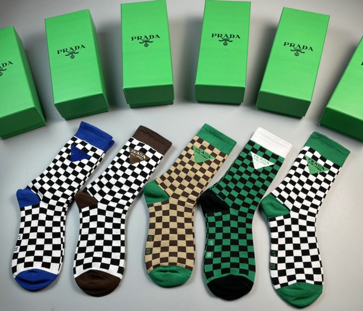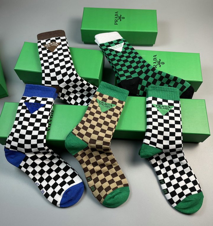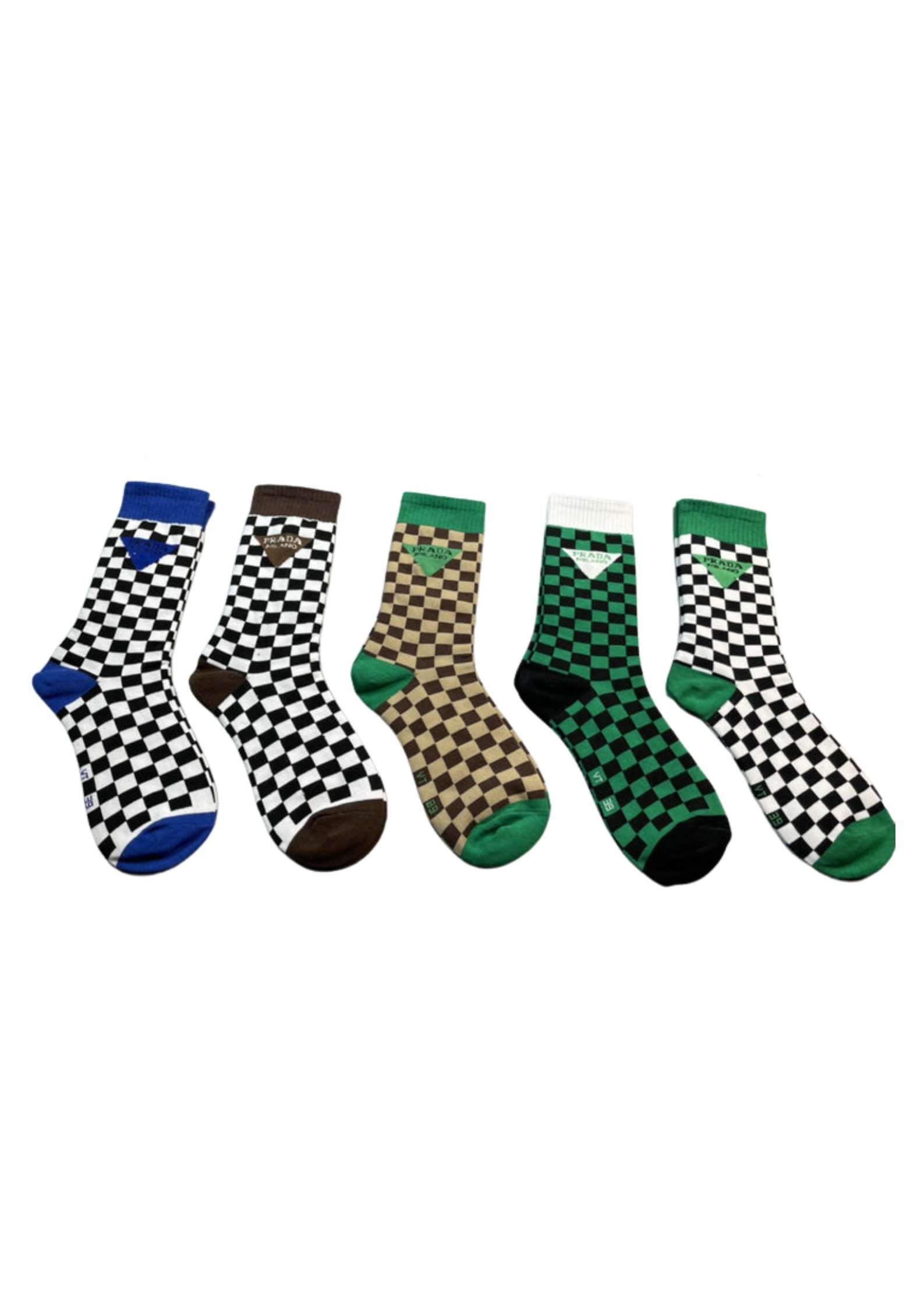 正面带 Prada 徽标长袜白色/黑色/棕色 – 5 双