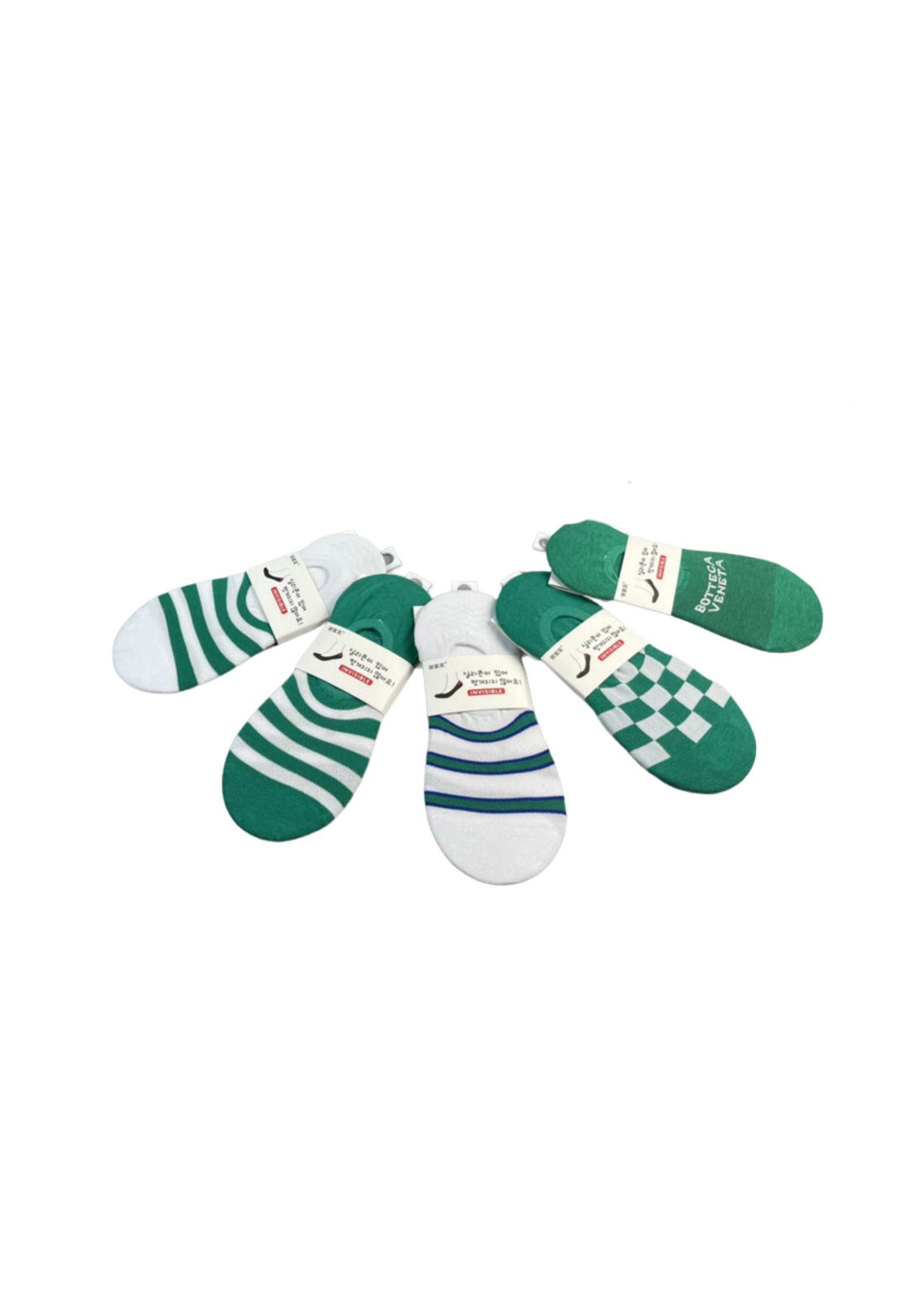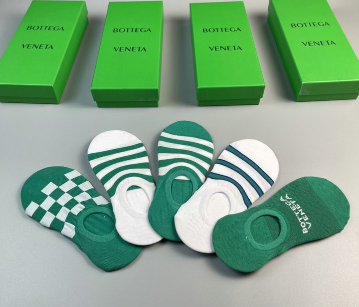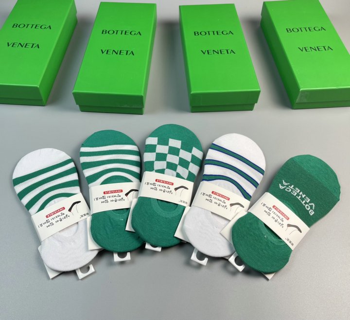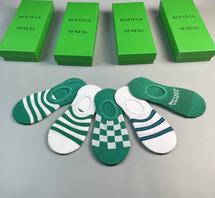 正面饰有 Bottega Veneta 徽标的袜子绿色和白色 – 5 双