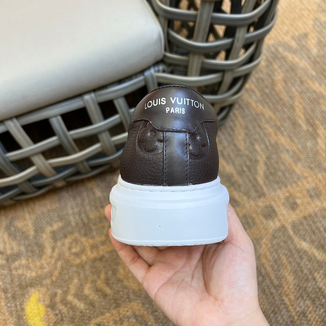 Beverly Hills 一脚蹬运动鞋采用柔软的粒面设计,压纹超大版本的标志性 Monogram 图案。该鞋款的特点是其厚实而轻盈的白色橡胶外底,上面刻有路易威登标志。低调的弹性嵌片让这款鞋款可以轻松穿脱。
