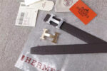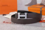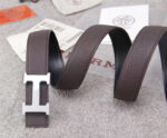 - 爱马仕腰带 Hermès 爱马仕原单腰带 经典H拉丝扣头 海外进口荔枝纹带条 灰色