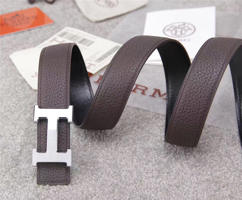爱马仕腰带 Hermès 爱马仕原单腰带 经典H拉丝扣头 海外进口荔枝纹带条 灰色