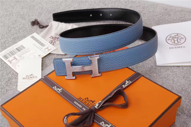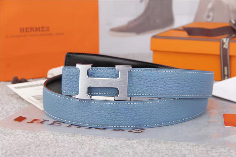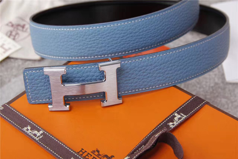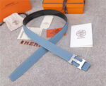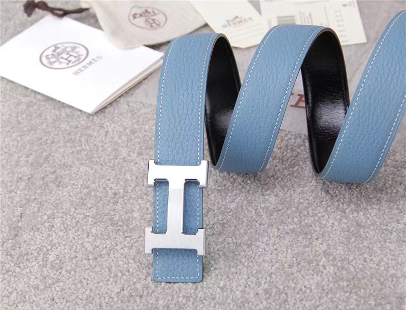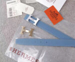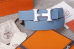 - 爱马仕腰带 Hermès 爱马仕原单腰带 经典H拉丝扣头 海外进口荔枝纹带条 浅蓝色