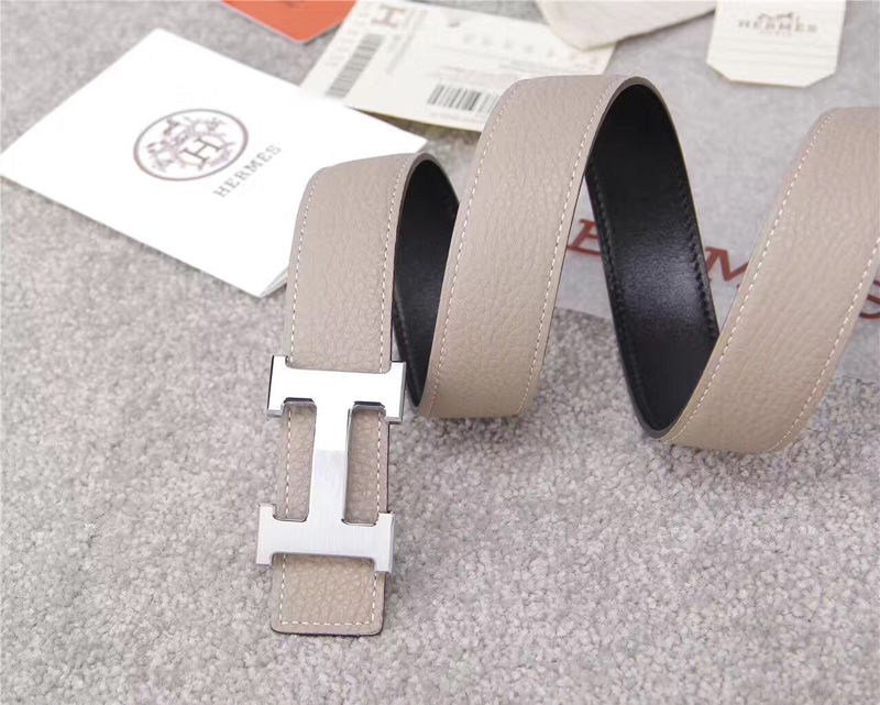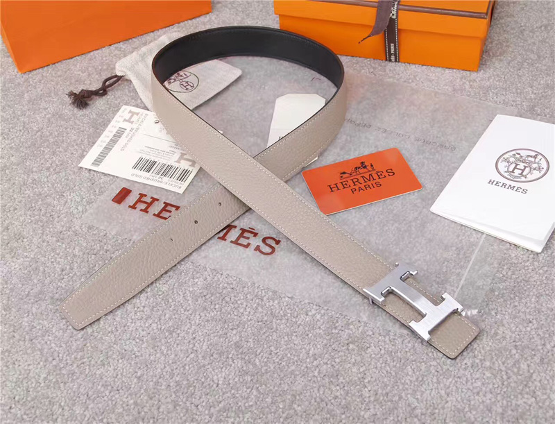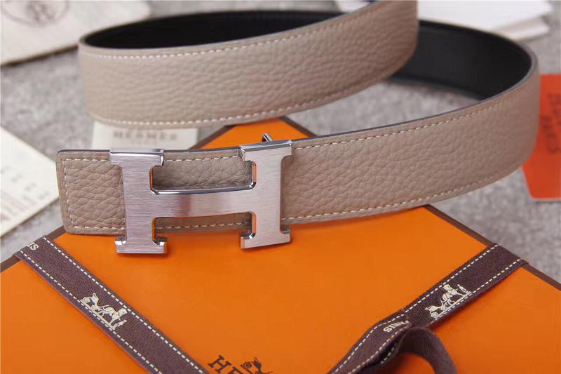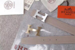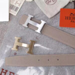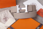 - 爱马仕腰带 Hermès 爱马仕原单腰带 经典H拉丝扣头 海外进口荔枝纹带条 浅灰