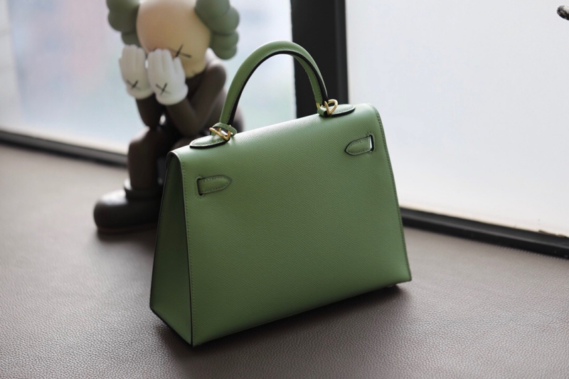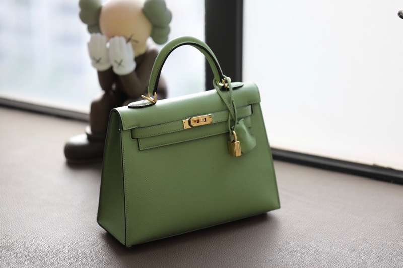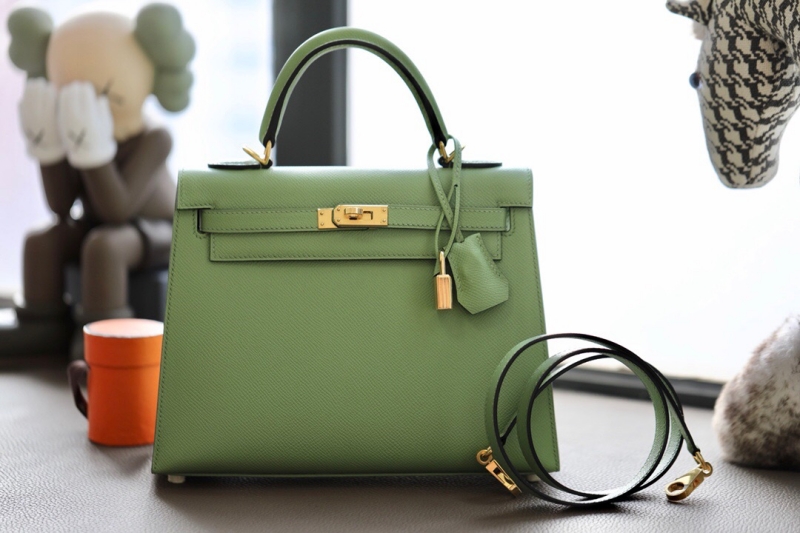 - 爱马仕Hermes Kelly系列凯莉包25 Epsom小牛皮 纯手工定制版 牛油果绿