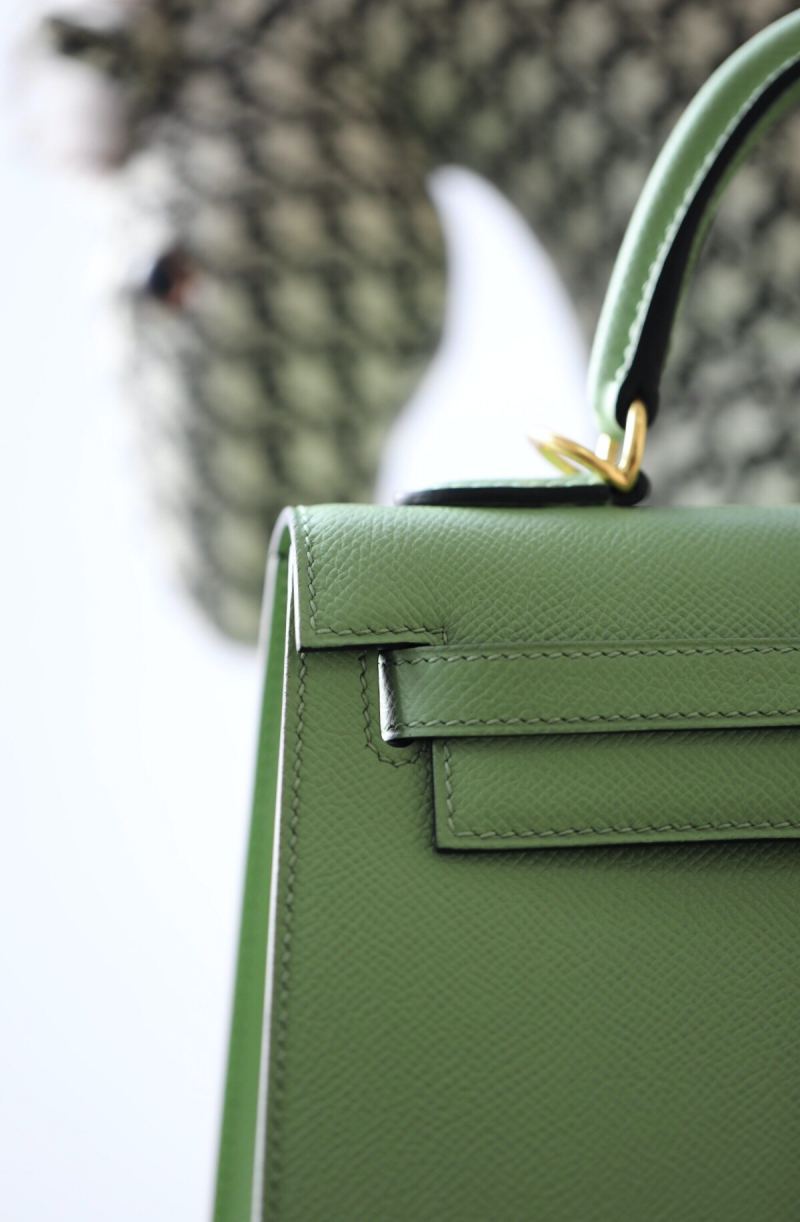 爱马仕Hermes Kelly系列凯莉包25 Epsom小牛皮 纯手工定制版 牛油果绿