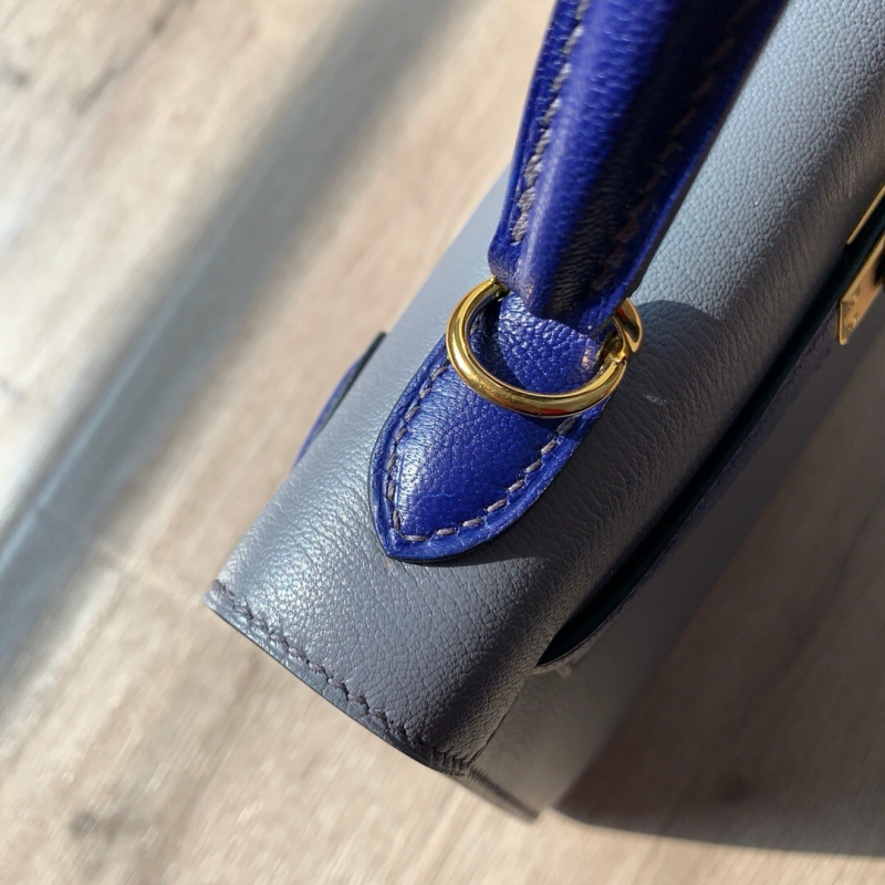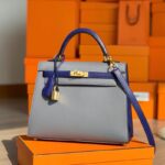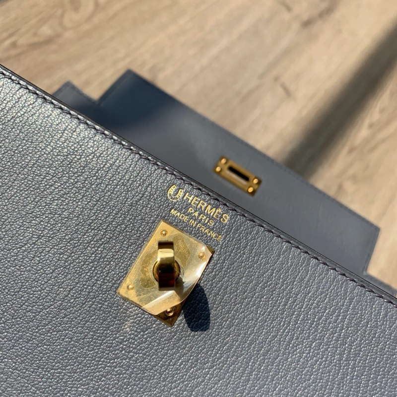 - 爱马仕Hermes Kelly系列凯莉包25 Epsom皮手掌纹 纯手工定制版 玛瑙灰