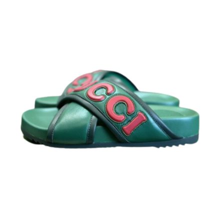这款凉鞋采用光滑蓝色和简约设计,交叉处饰有对比鲜明的 Gucci 字样,进一步丰富了这款凉鞋的风格。带扣带闭合紧贴轮廓,确保舒适,同时保持时尚美感。