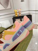 该品牌采用 90 年代篮球运动鞋的代名词,推出了对 Gucci Basket 运动鞋的全新诠释。这种风格模仿了球场审美的自我表达,具有独特的特征和细节。多色定义了这一标志性设计的新迭代。