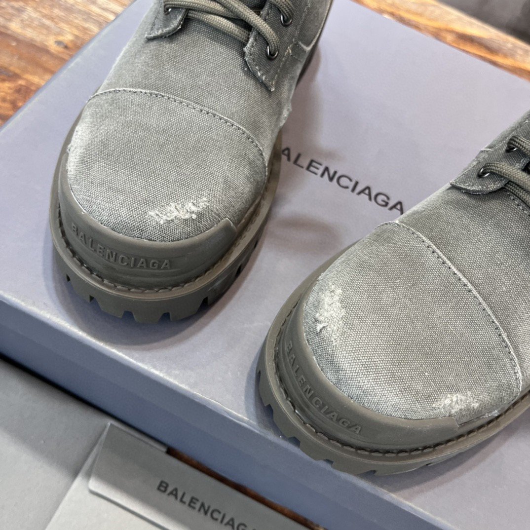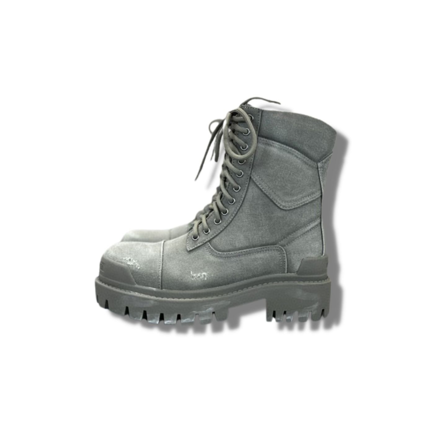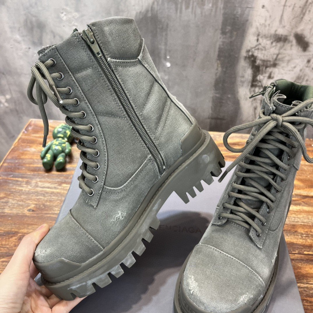 BALENCIAGA 做旧效果军靴,甘草色,仿旧饰面,后部压花徽标,圆头,长及脚踝,前系带向上开合,侧面拉链开合,粗橡胶凸纹鞋底。