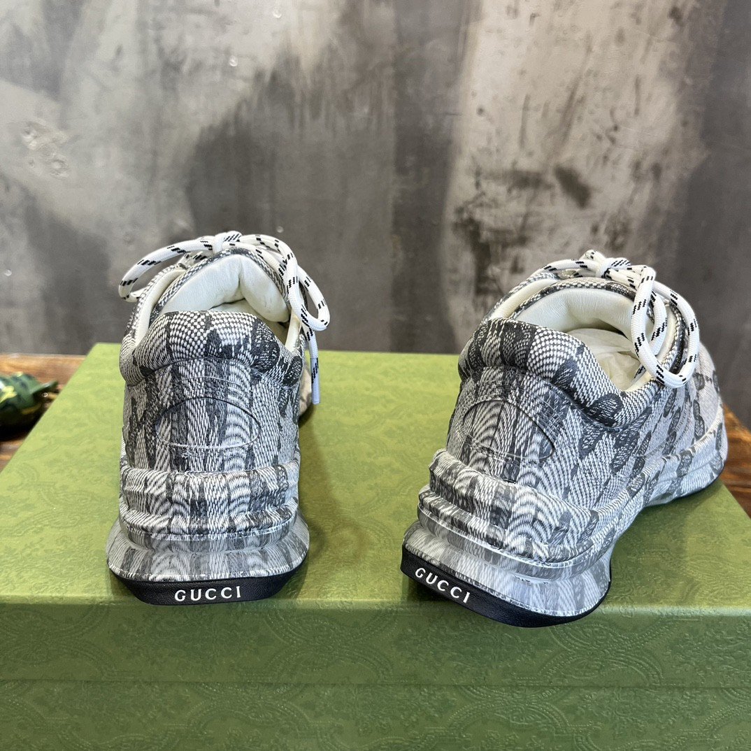 受体育界启发的设计通过 Gucci 镜片与引人注目的标志细节进行诠释。这双流线型运动鞋采用白色绒面革制成,配有双色橡胶鞋底和 Interlocking G 细节。