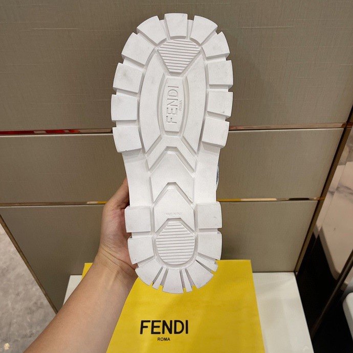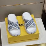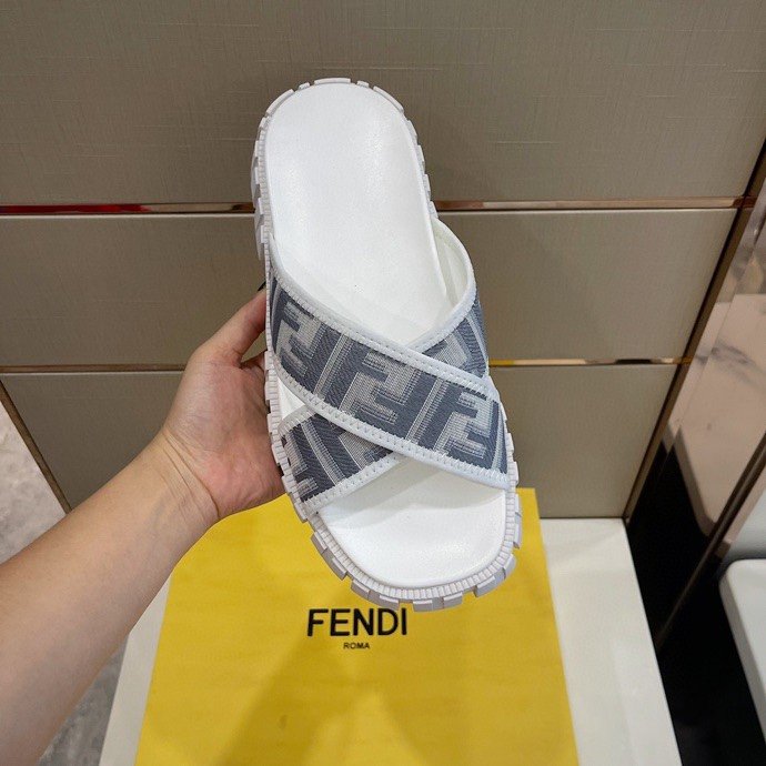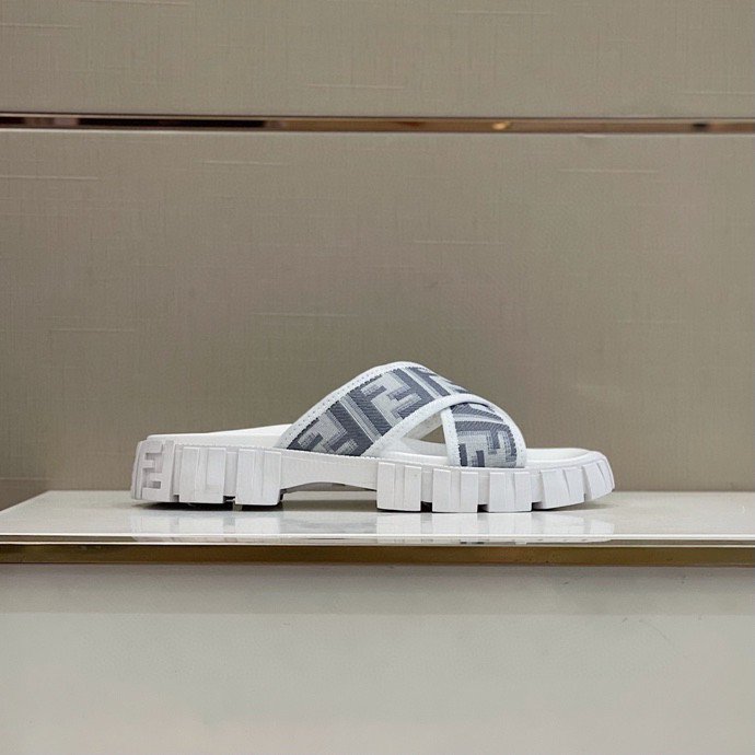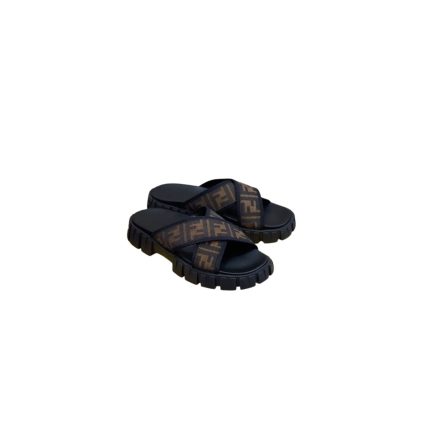 交叉松紧带凉鞋。高橡胶鞋底。肩带采用宏观 FF 图案定制。