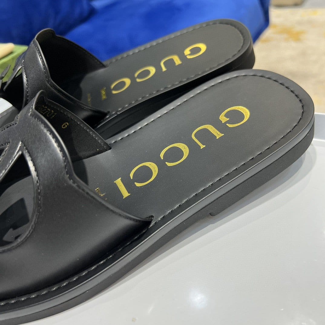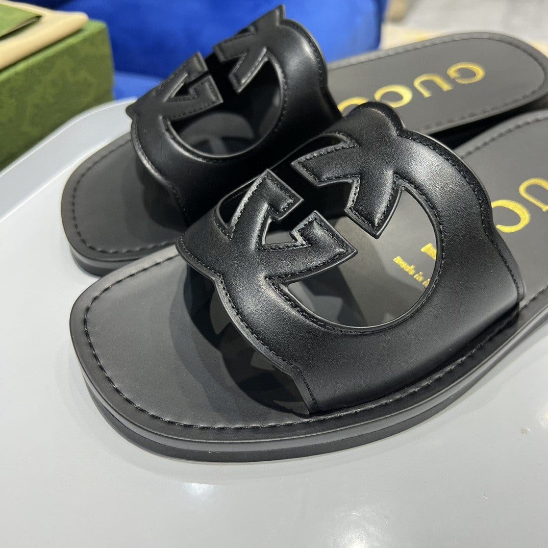 Gucci Interlocking-G 镂空拖鞋黑色