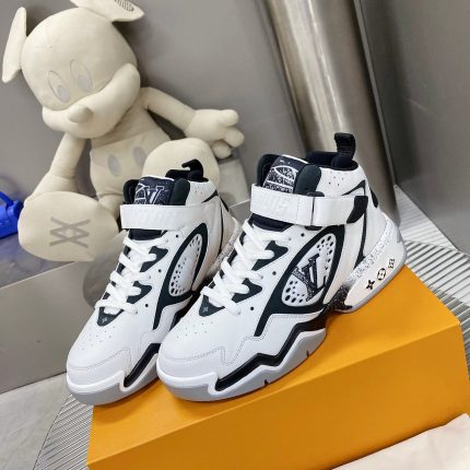Lous 露跟运动鞋是 Louis Vuitton 2022 年秋冬时装秀的核心单品。 Monogram 元素,舒适的软垫鞋舌,外底浮雕 Louis Vuitton 标志。