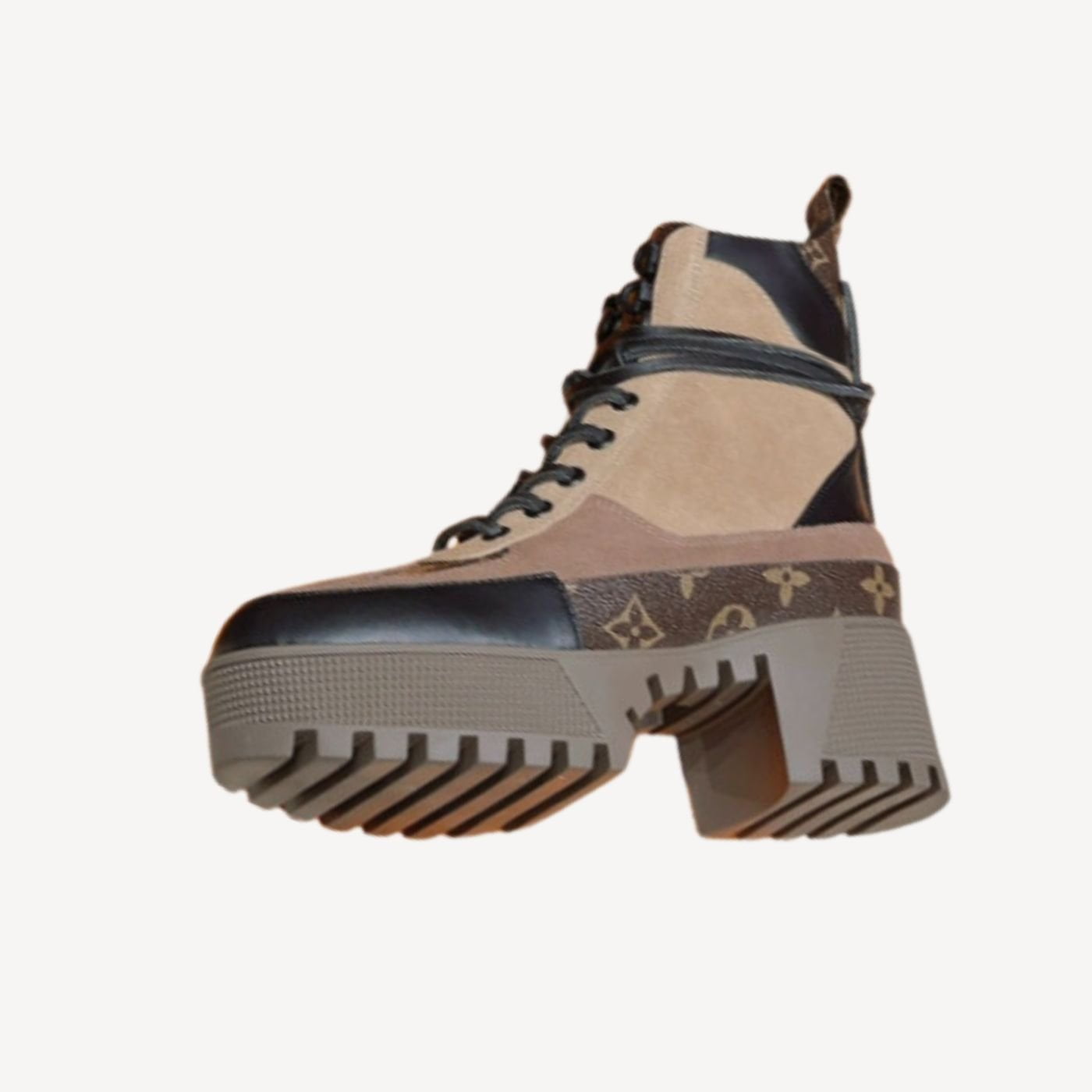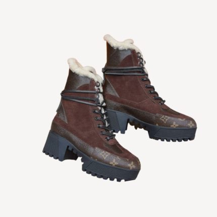 Laureate 厚底沙漠靴采用柔软的 Monogram 羊毛重新设计,并配有配套的绒面小牛皮饰边。这款标志性款式因其缠绕脚踝的长皮革鞋带而引人注目。轻质橡胶外底与鞋面颜色相配,饰有一排 LV 缩写,灵感源自路易威登旅行箱的 Lozine 边缘 可调节尼龙搭扣带