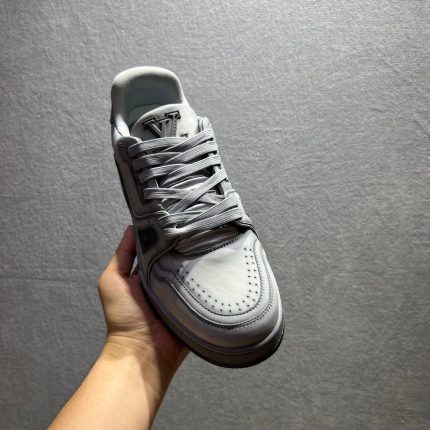 这款标志性 LV Trainer 运动鞋的冬季版本柔软,配有温暖的衬里。外底与鞋面颜色匹配,呈现全蓝色外观,并辅以 LV 首字母细节。侧面印有 Virgil Abloh 的银色手写 Louis Vuitton 签名。