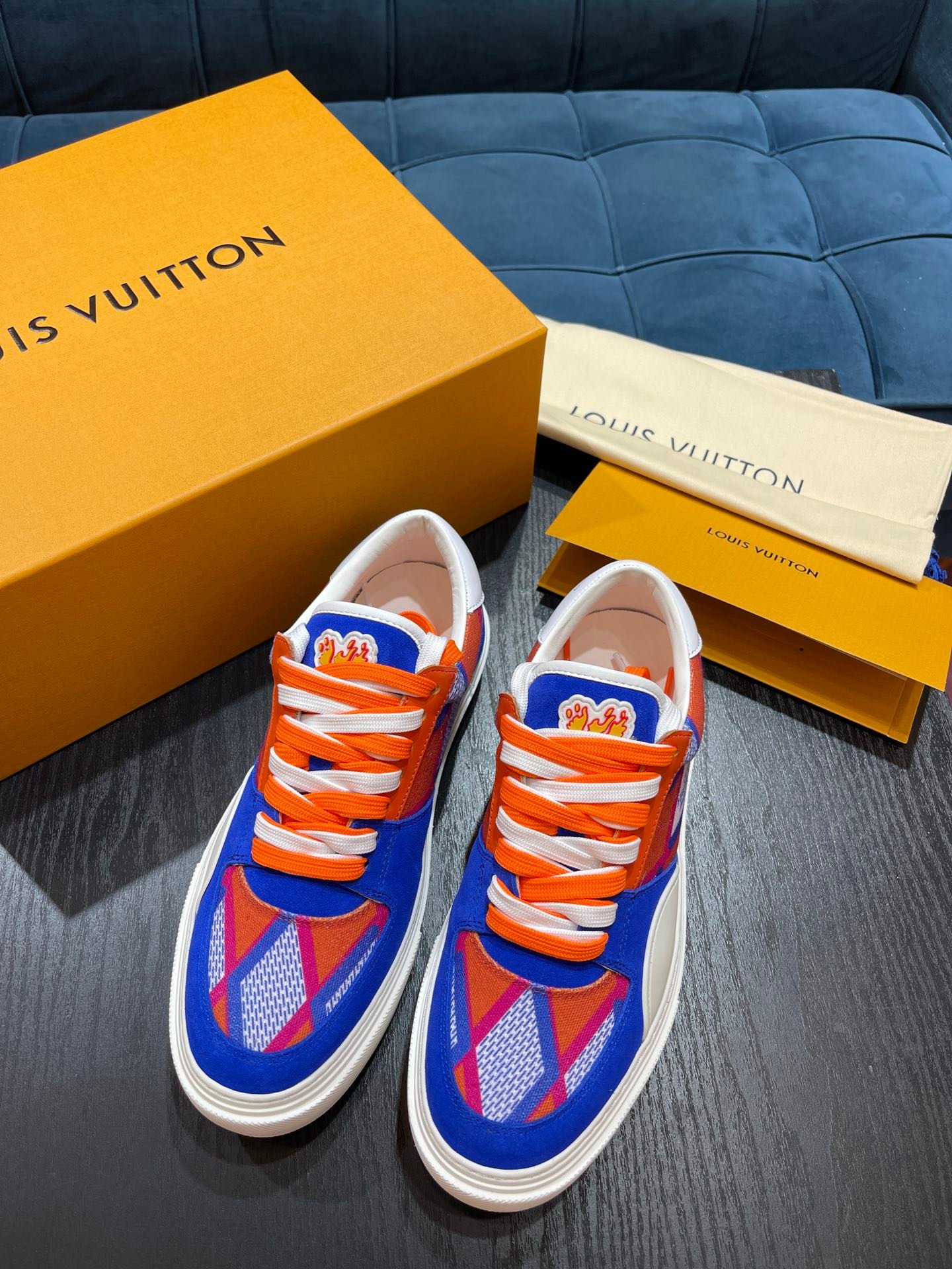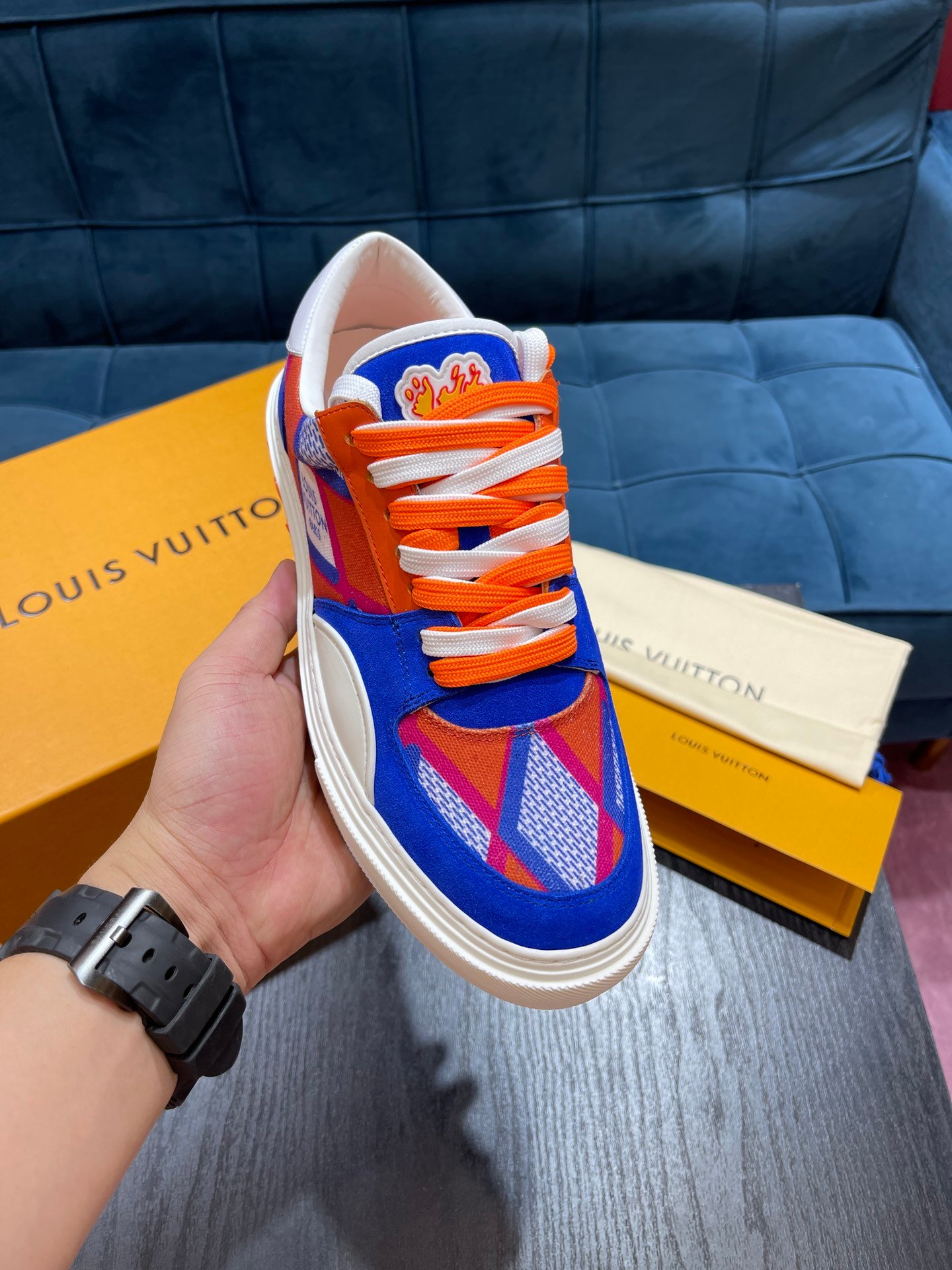 鞋舌和侧面饰有 LV 缩写