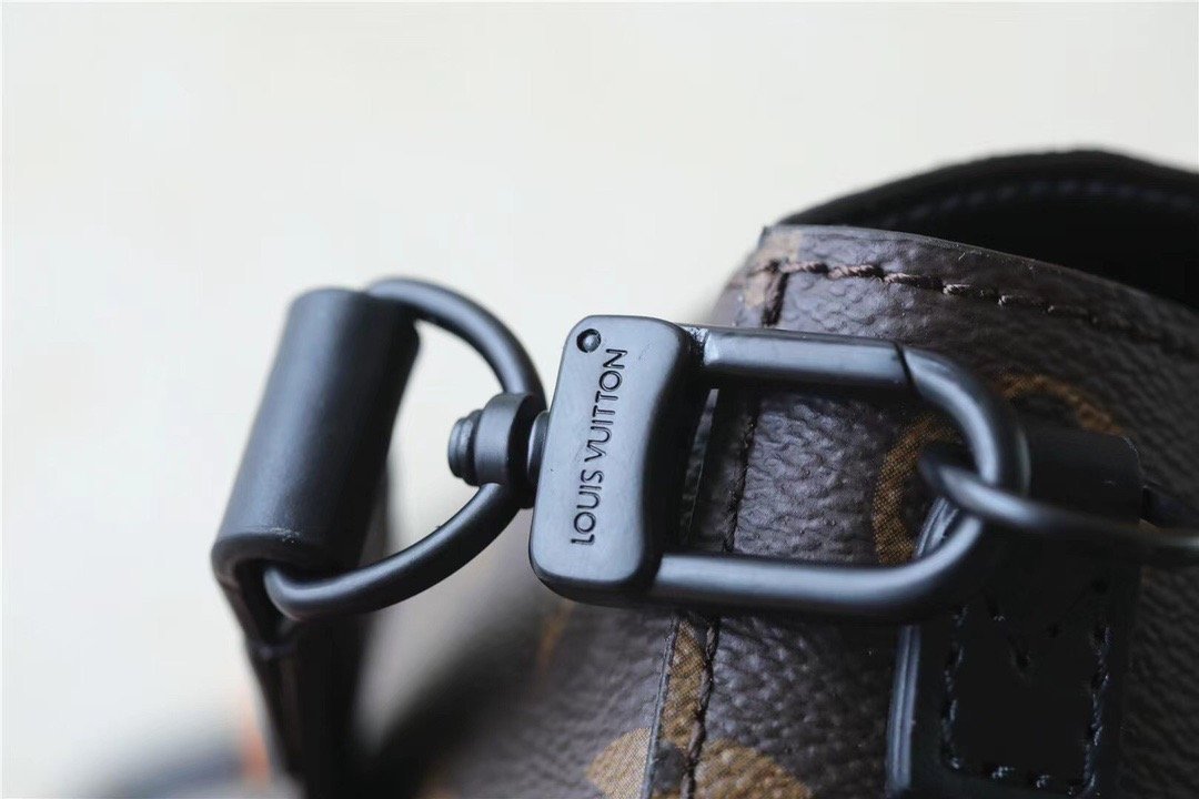 Louis Vuitton S-Lock 垂直可穿戴钱包 Monogram Macassar 黑色 适合男士、男士包袋、单肩包和斜挎包 7.5 英寸/19 厘米 LV M81522