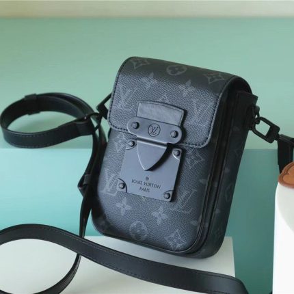 路易威登 S-Lock 垂直可穿戴钱包 Monogram Macassar 黑色 男士包袋、单肩包和斜挎包 7.5 英寸/19 厘米 LV M81522