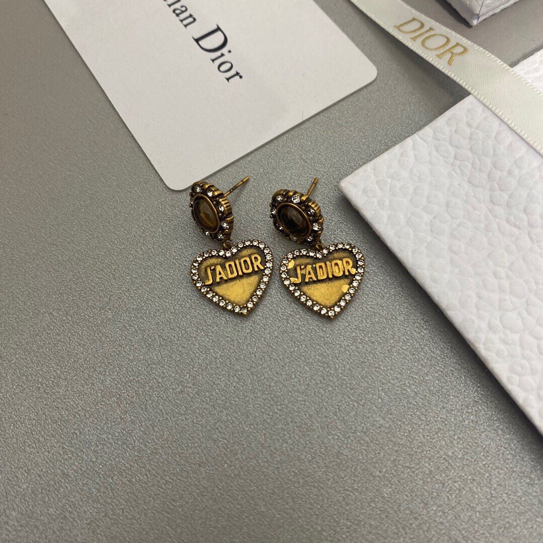 Dior 雕刻 JADIOR 心形耳环金色