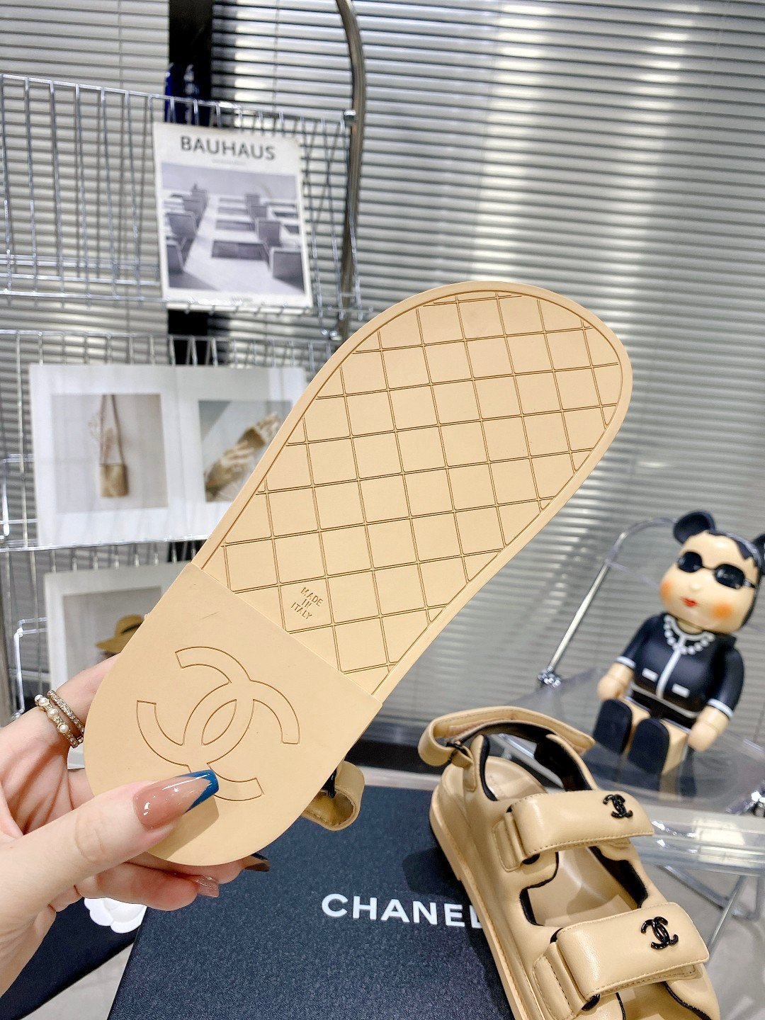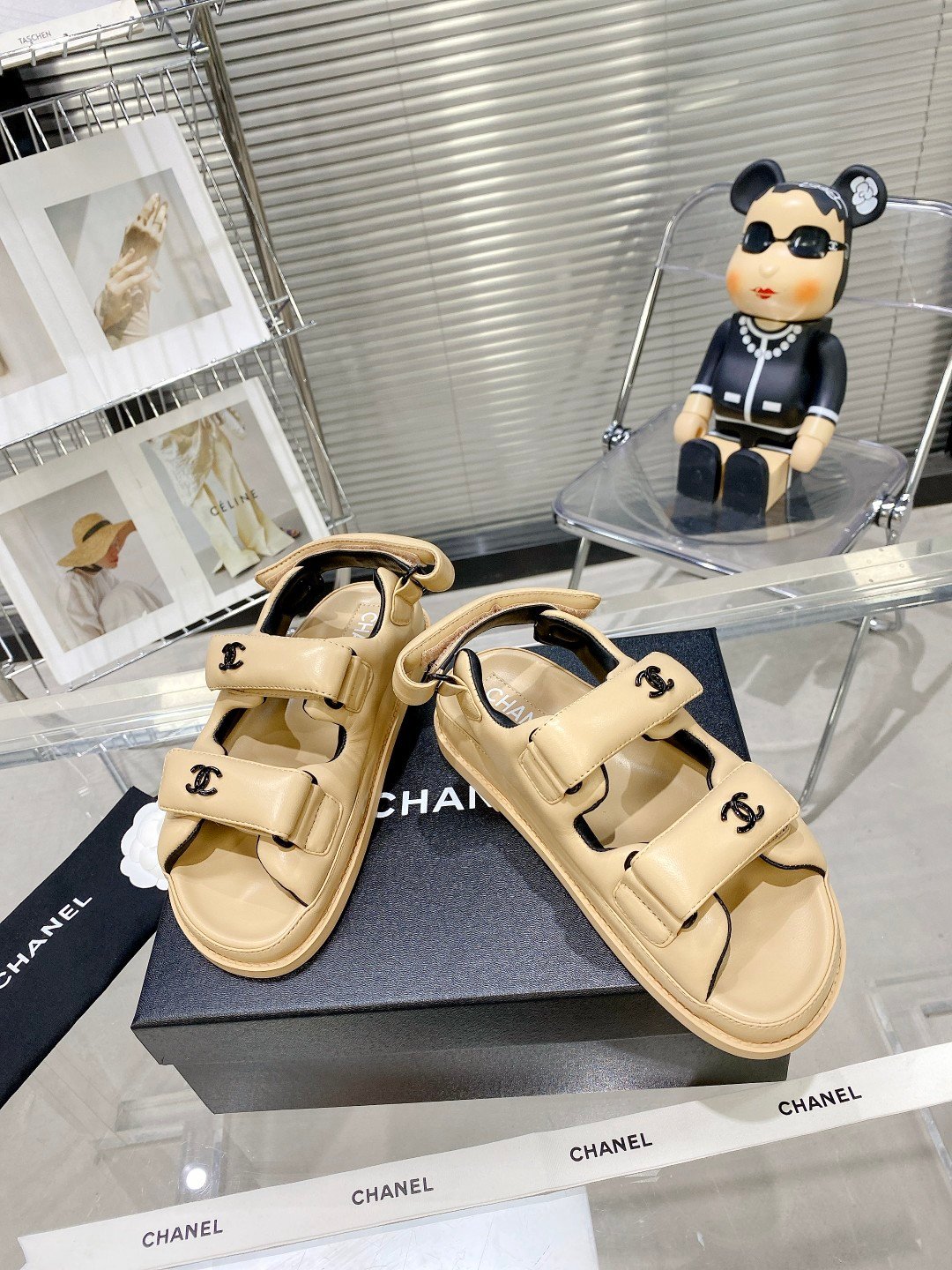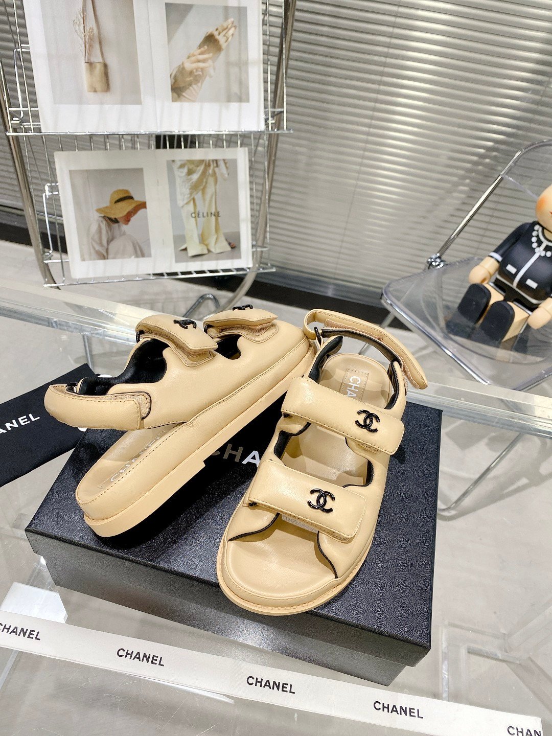 两只带香奈儿标志的凉鞋