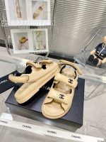 香奈儿女式凉鞋,带香奈儿标志米色女式