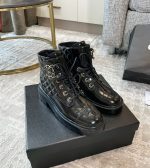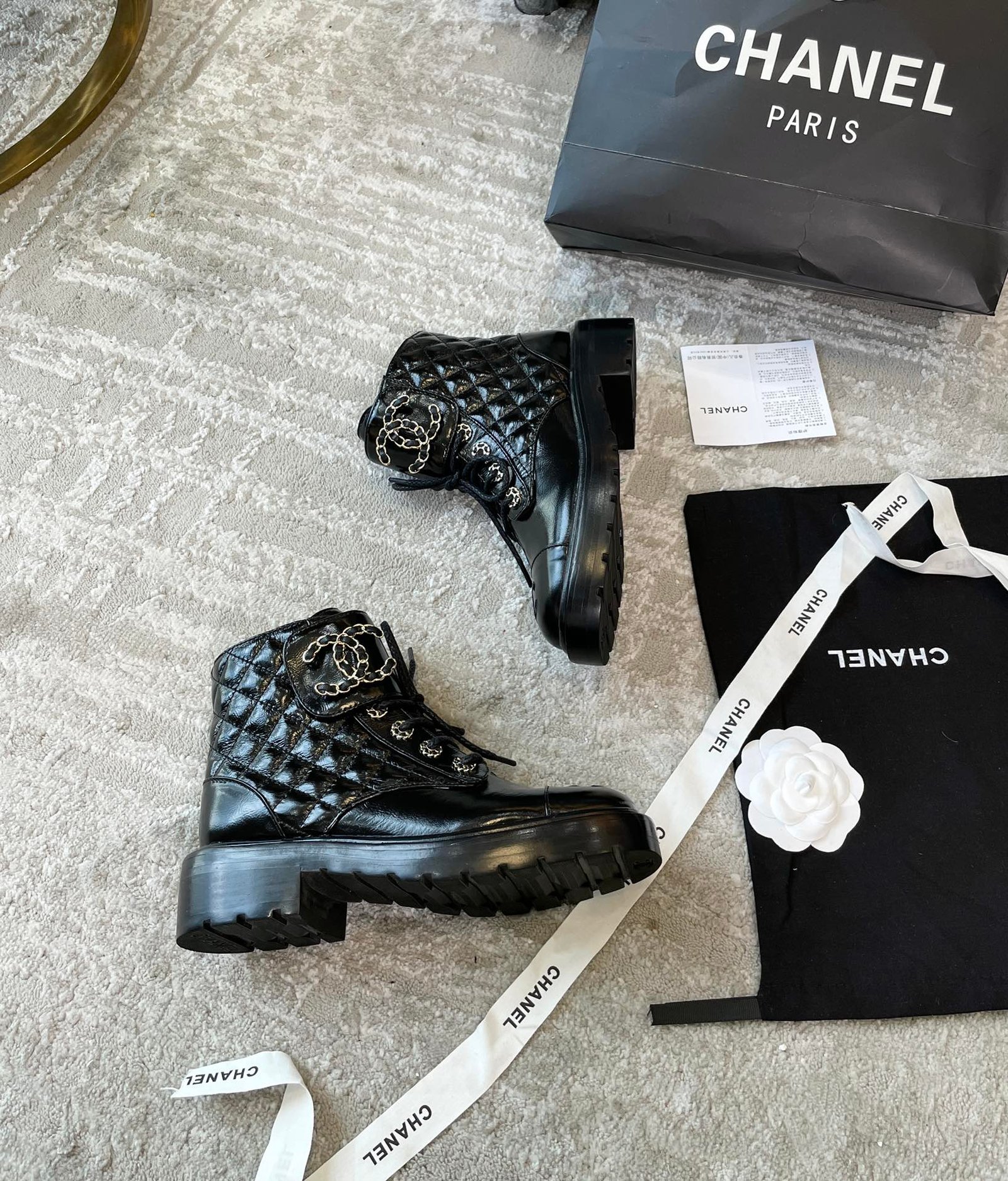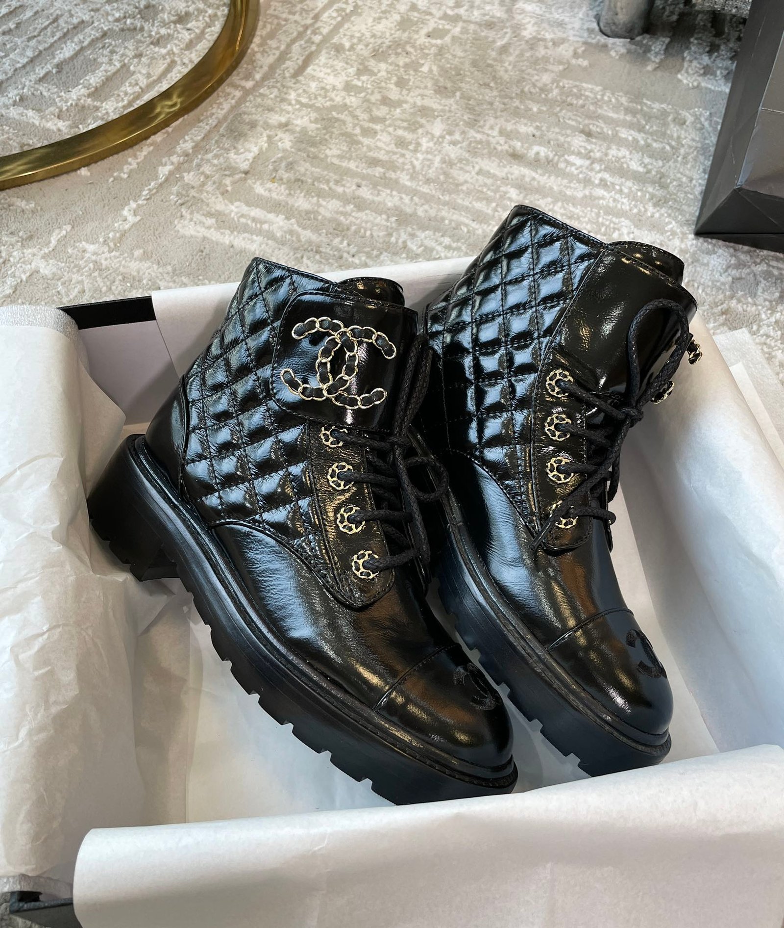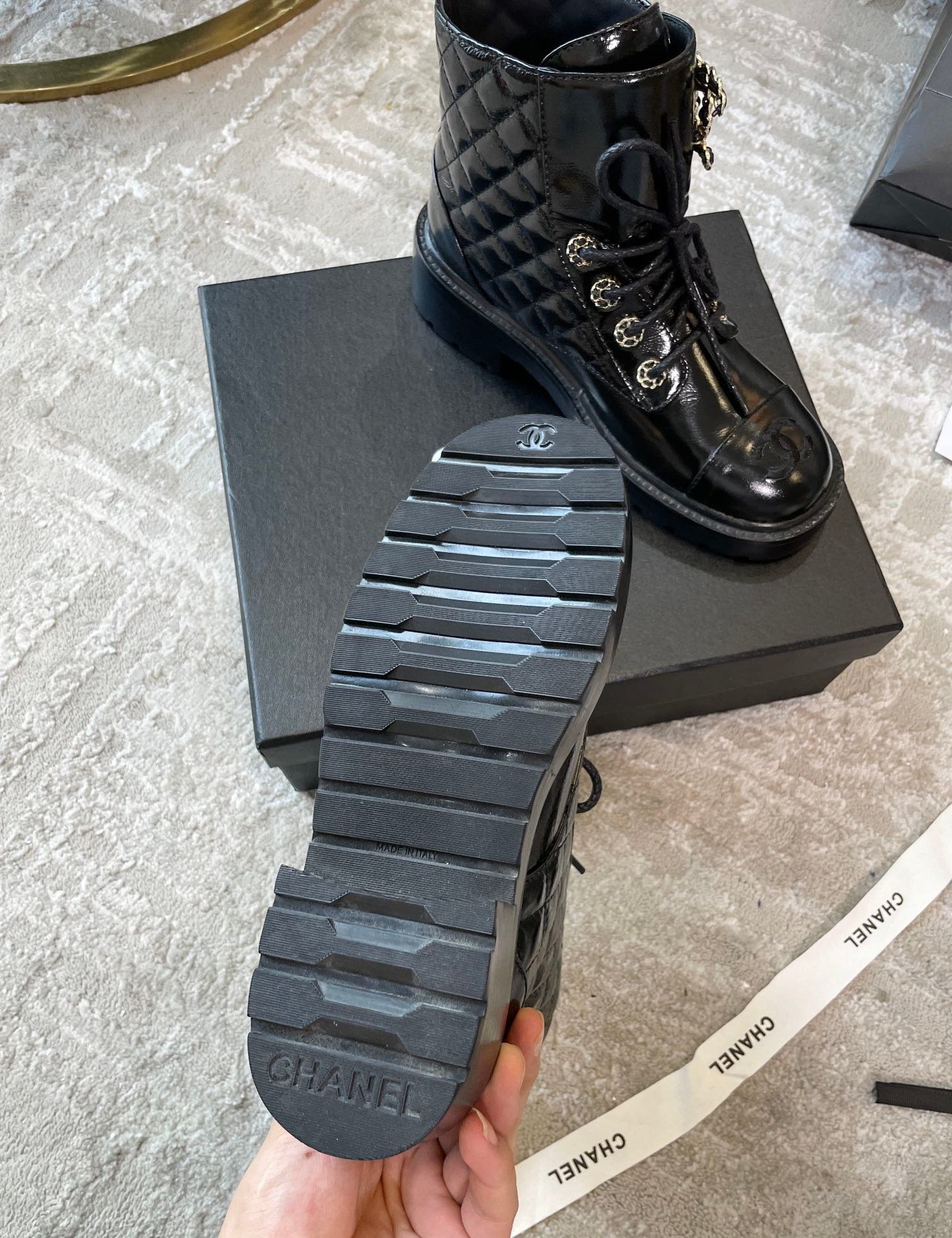 香奈儿女式系带鞋亮黑色 1.5 英寸/ 4 厘米