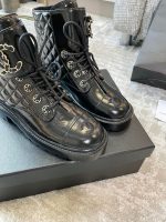 香奈儿女式系带鞋亮黑色女式 1.5 英寸/ 4 厘米