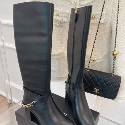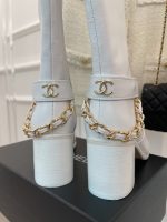 Chanel 女式链条高筒靴女式白色 3.7 英寸/ 9.5 厘米