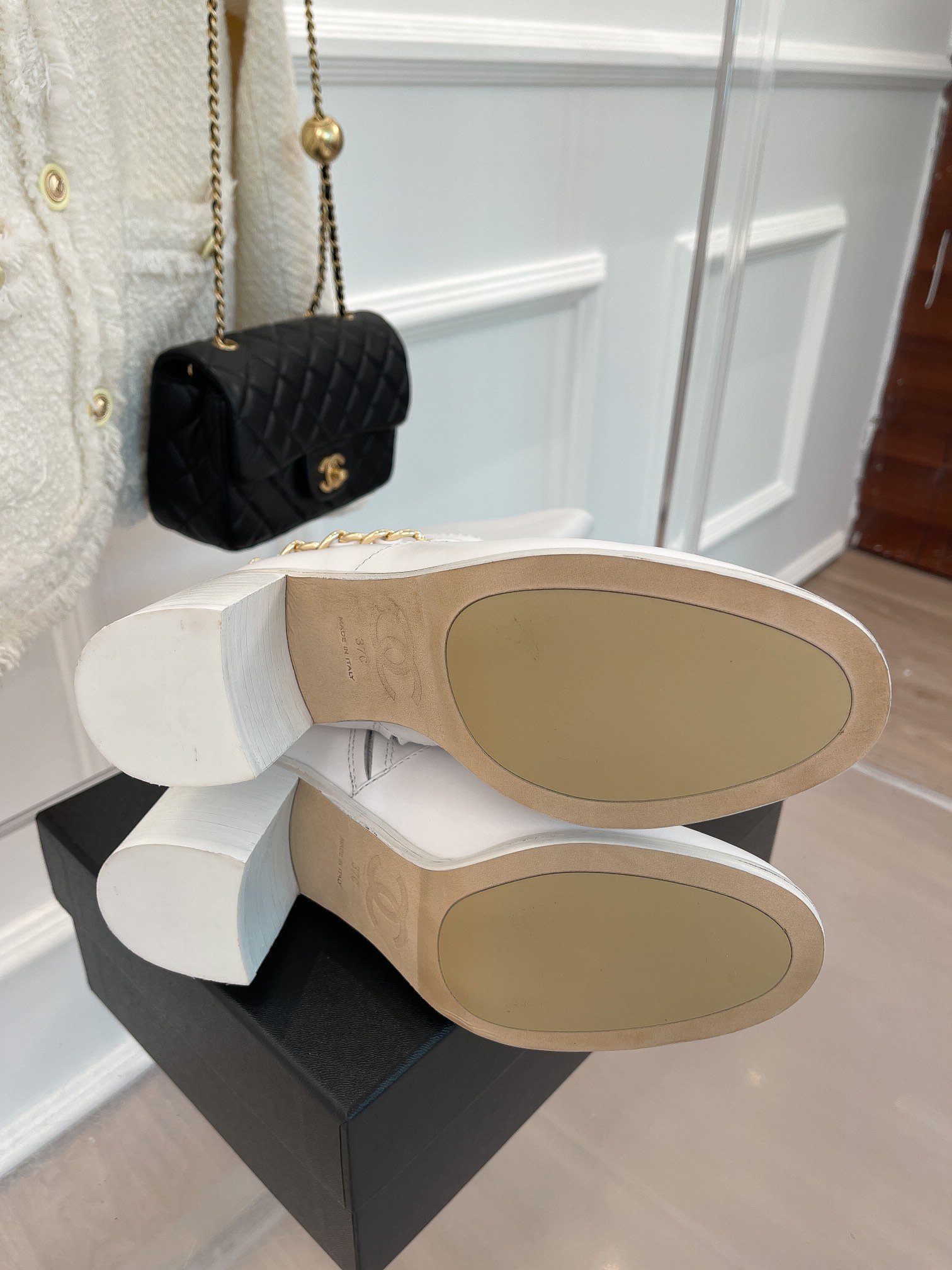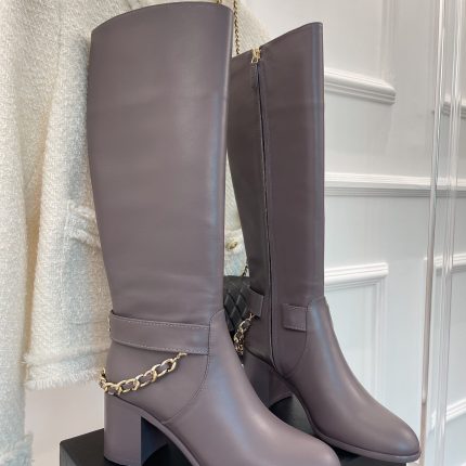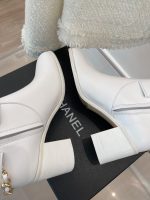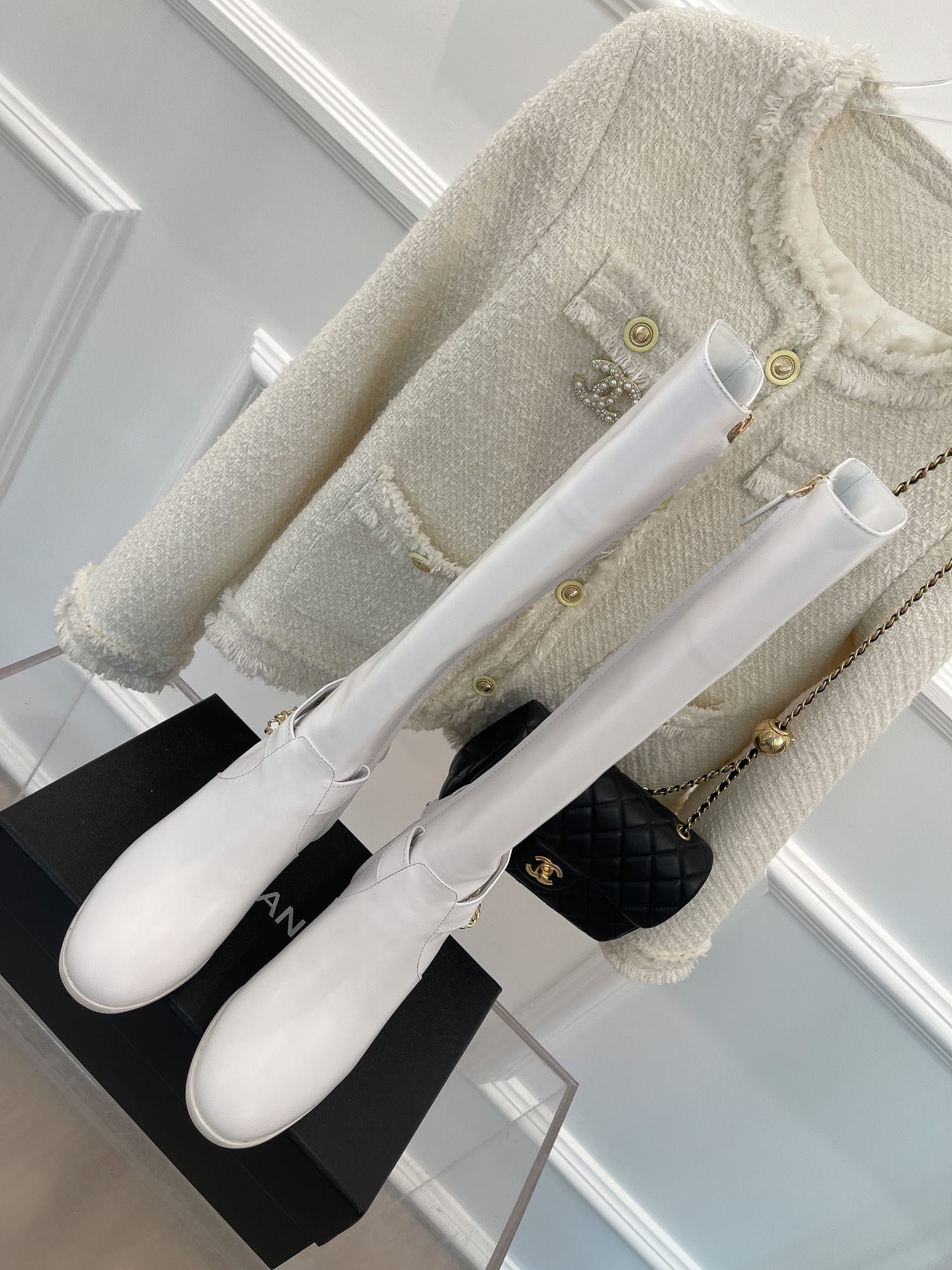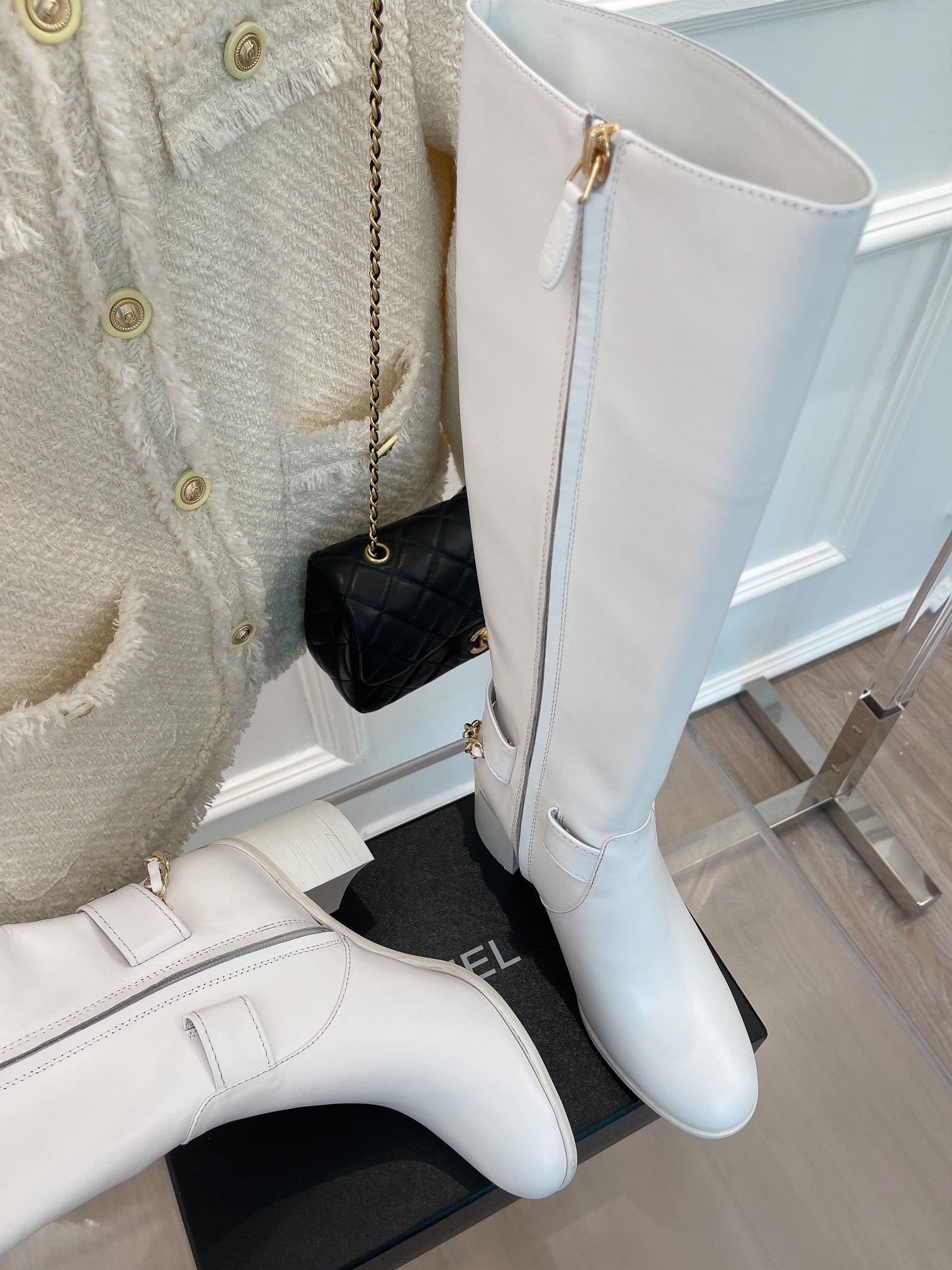 香奈儿女式链条高筒靴白色女式 3.7 英寸/ 9.5 厘米