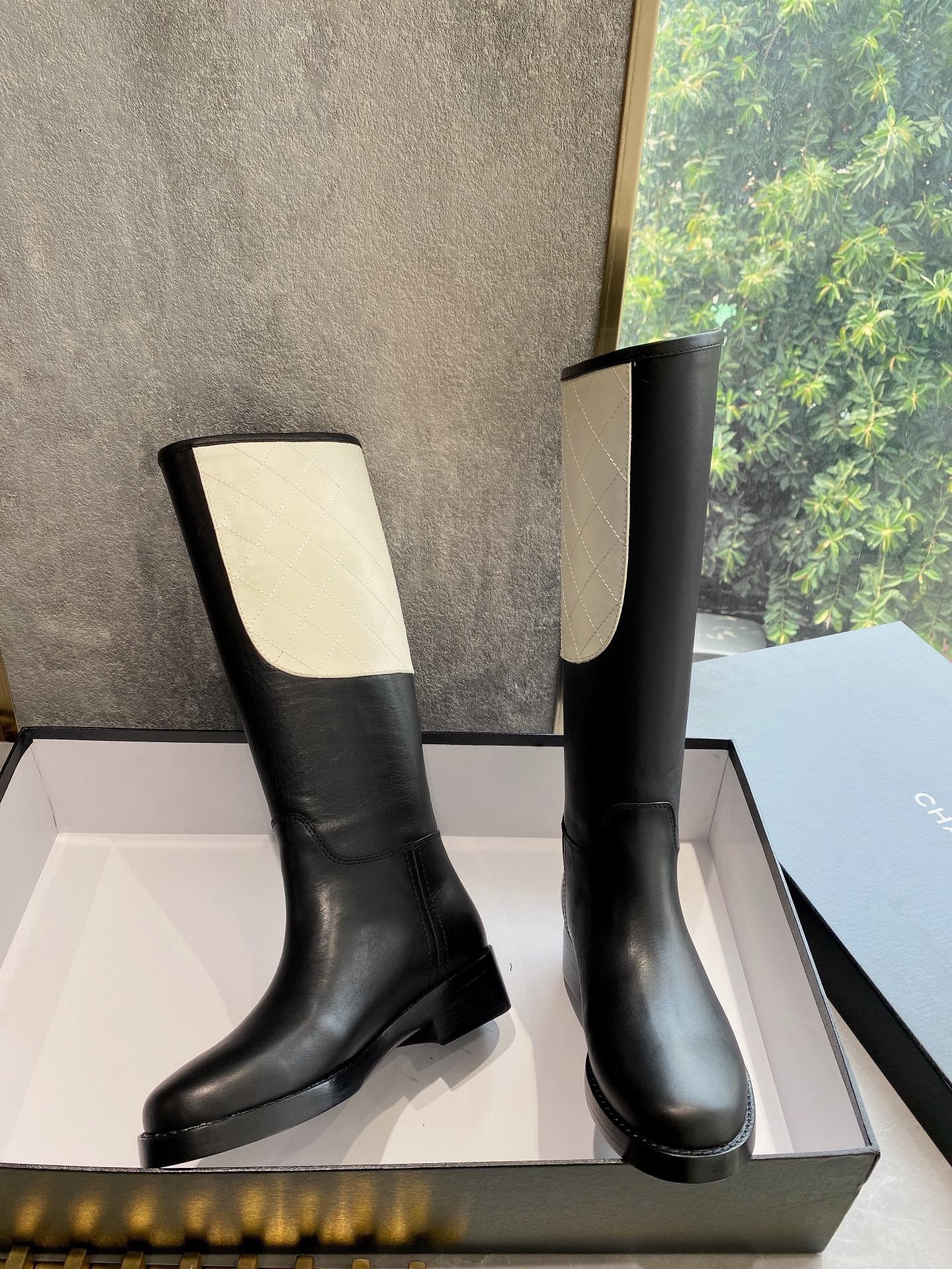 香奈儿女式高筒靴黑色/白色