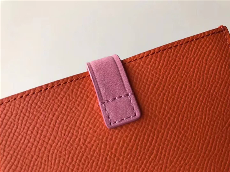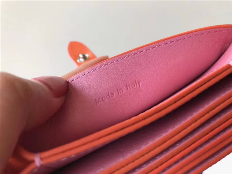 - 104323 Celine赛琳 Strap 粒面拼亮泽小牛皮 风琴褶 卡包 橘配粉