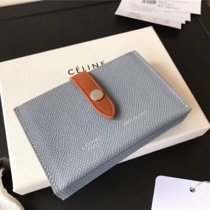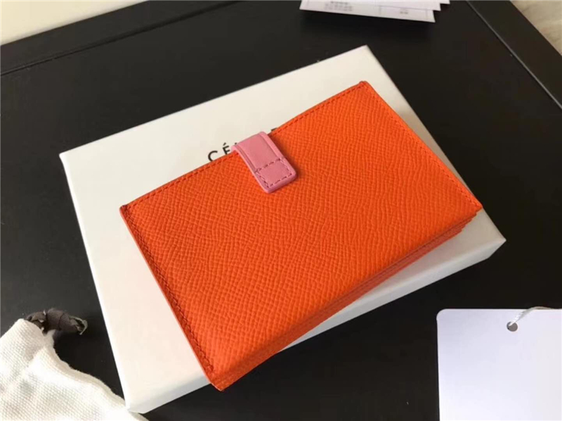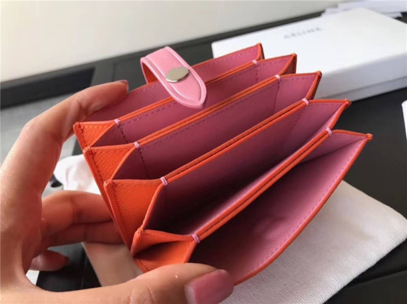 104323 Celine赛琳 Strap 粒面拼亮泽小牛皮 风琴褶 卡包 橘配粉