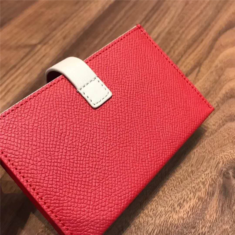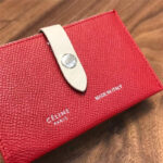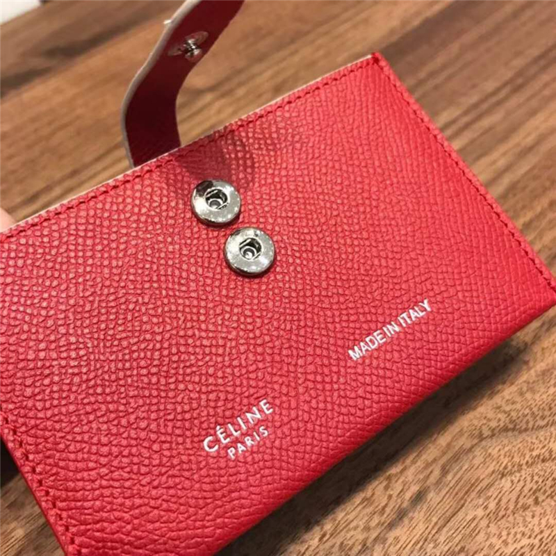 104323 Celine赛琳 Strap 粒面拼亮泽小牛皮 风琴褶 卡包 红配白