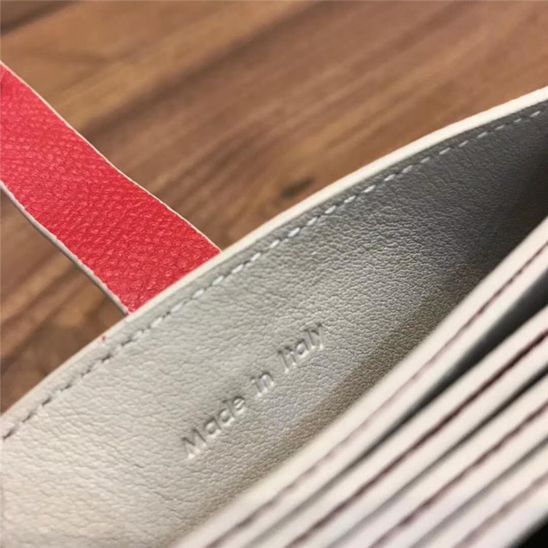 - 104323 Celine赛琳 Strap 粒面拼亮泽小牛皮 风琴褶 卡包 红配白