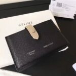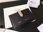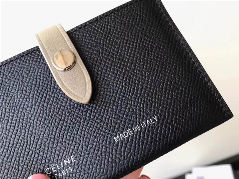 104323 Celine赛琳 Strap 粒面拼亮泽小牛皮 风琴褶 卡包 黑拼灰