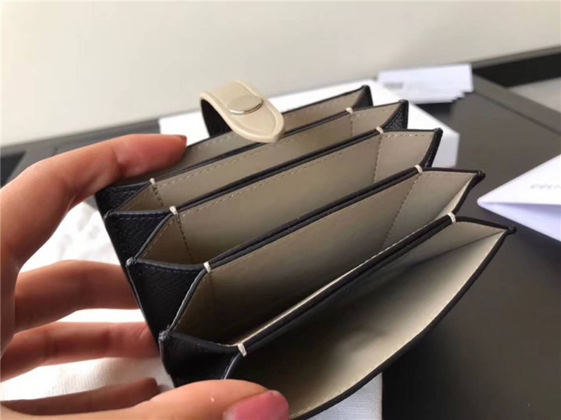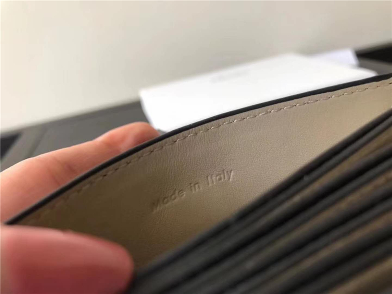 - 104323 Celine赛琳 Strap 粒面拼亮泽小牛皮 风琴褶 卡包 黑拼灰